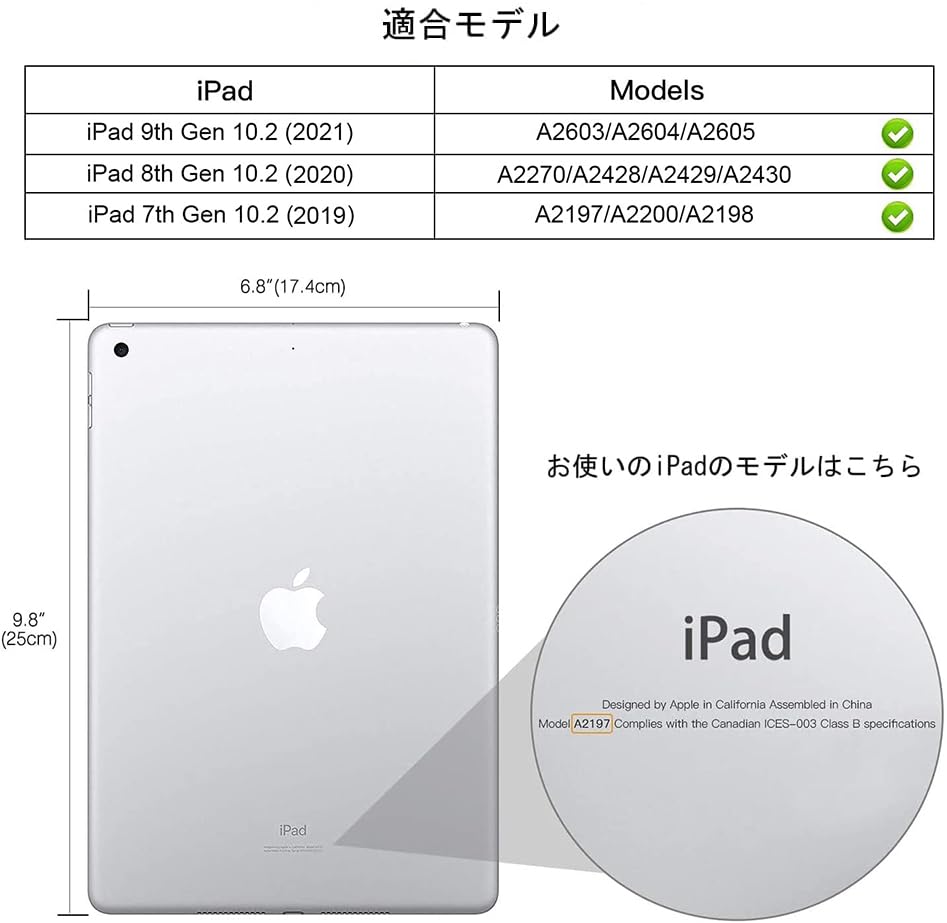 【対応端末】iPad 9/8/7 (2021, 2020, 2019)専用です。モデル番号: A2602, A2603, A2604, A2605, A2270, A2428, A2429, A2430, A2197, A2200, A2198。注意: 他のどのiPadモデルにも対応しておりません