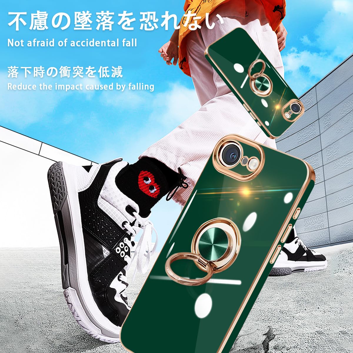【リング機能&スタンド機能】360°回転・調整リングホルダーです。リングに指を1本通すことで、片手でスマホを操作でき、落下を防止することができます。リングを立ててスタンドにしたりすることも可能です、持たず動画鑑賞などを楽しむことができます。iPhone 16e ケース