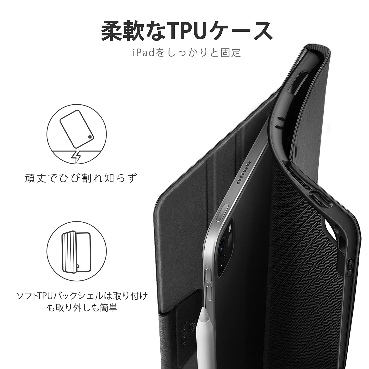 Antbox iPad Pro 11インチ ケース 第4/3/2/1世代兼用 Pencil 2 収納/ペアリングとワイヤレス充電対応 ひび割れ防止 PUレザー製iPad Pro 11 カバー オートスリープ&スタンド機能付き (黒)