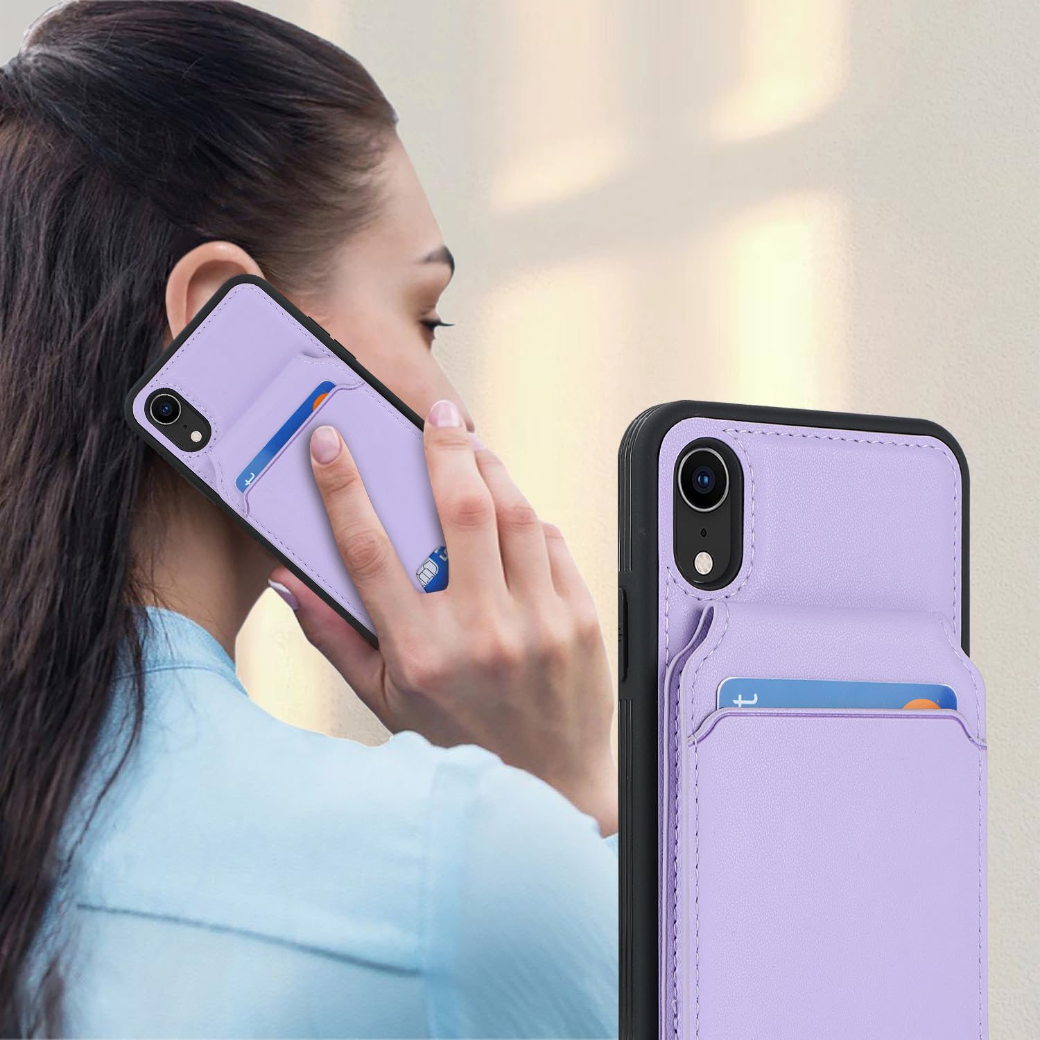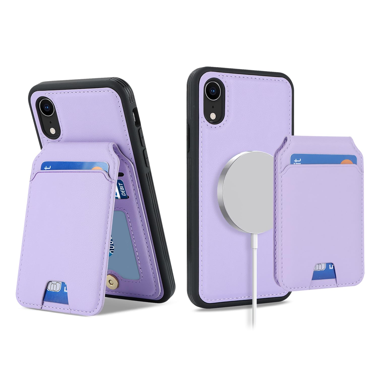 Havaya iPhone XR ケース MagSafe iPhonexr ケース マグセーフ 耐衝撃 背面カード収納 分離式 ワイヤレス充電対応 フェイクレザー(6.1インチ対応)-パープル