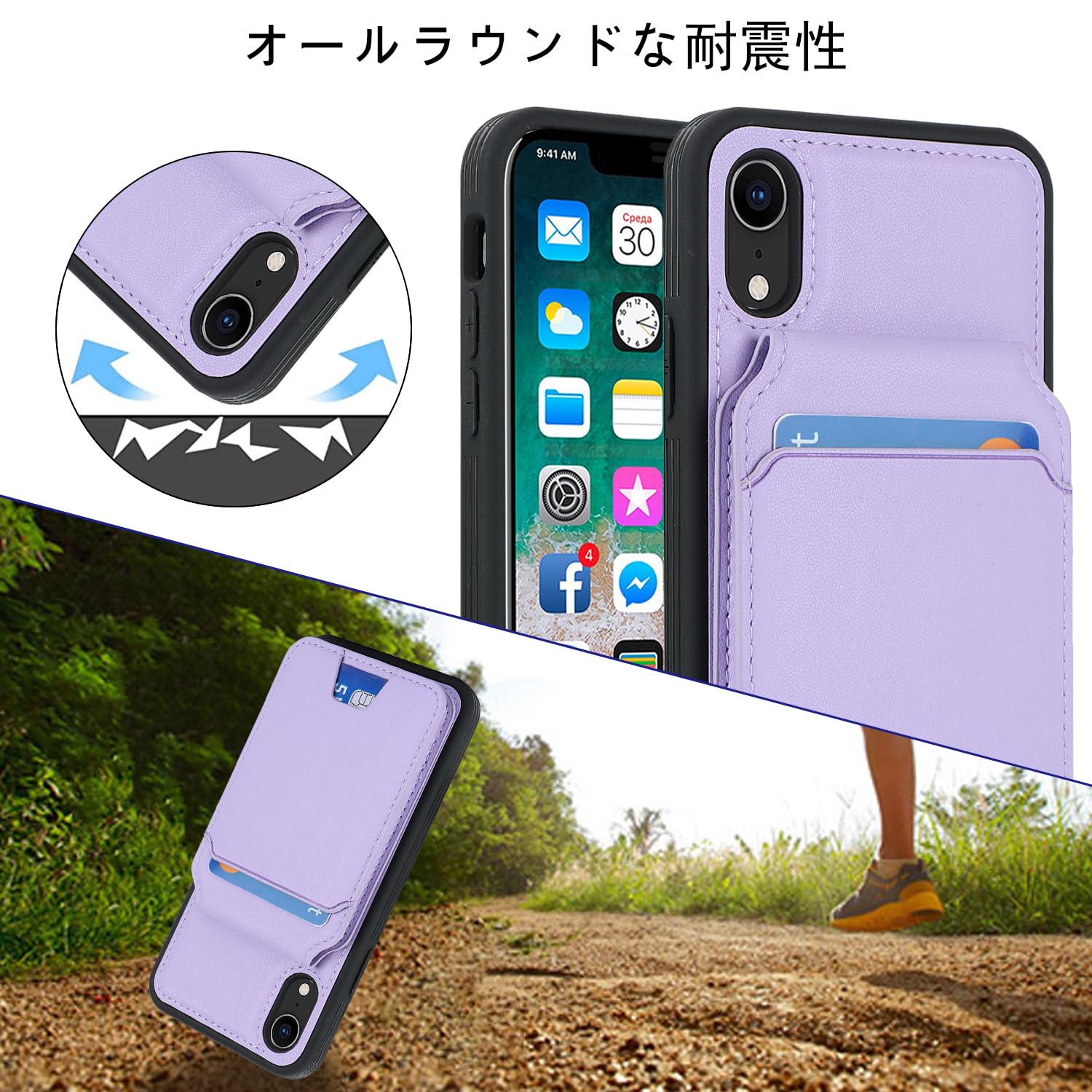 【在庫セール】Havaya iPhone XR ケース MagSafe iPhonexr ケース マグセーフ 耐衝撃 背面カード収納 分離式 ワイヤレス充電対応 フェイクレザー(6.1インチ対応)-パープル