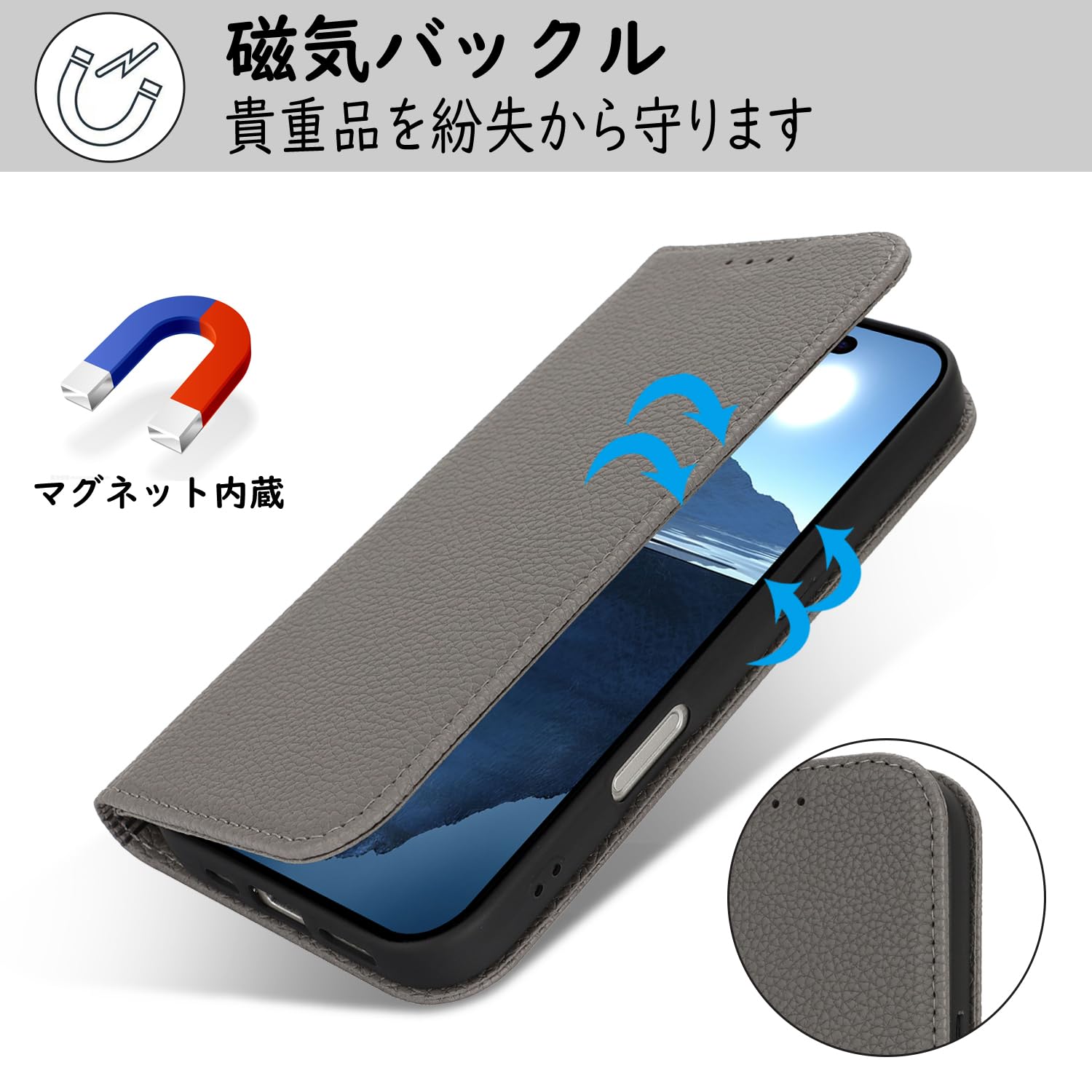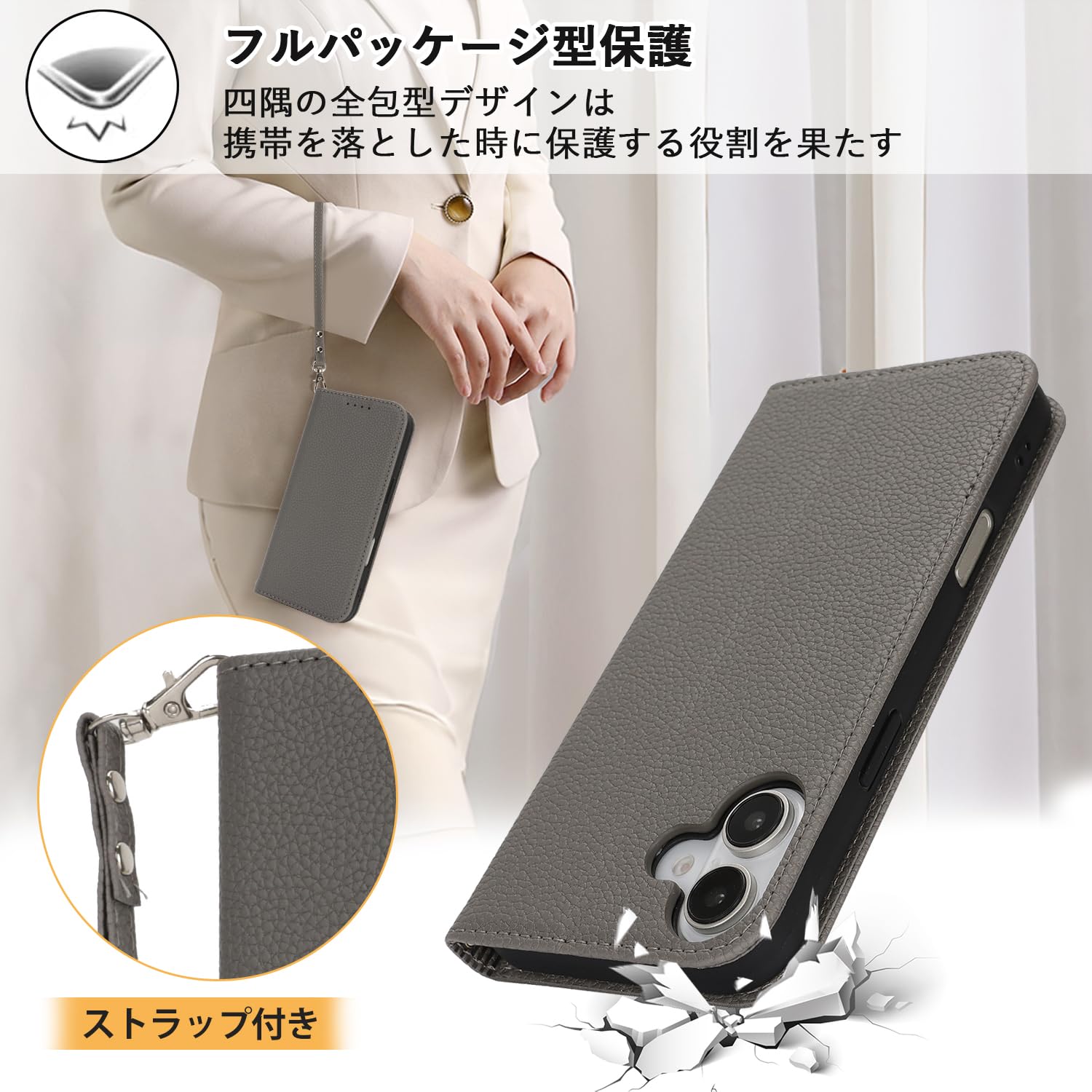 【数量限定】【Hamany】 iphone 16 ケース 手帳型 あいふおん16ケース ストラップ カード収納 スタンド機能 スマホケース iphone 16 マグネット式 レザー アイフォン16 ケース 耐衝撃 耐久性 耐摩擦 携帯ケース -グレー