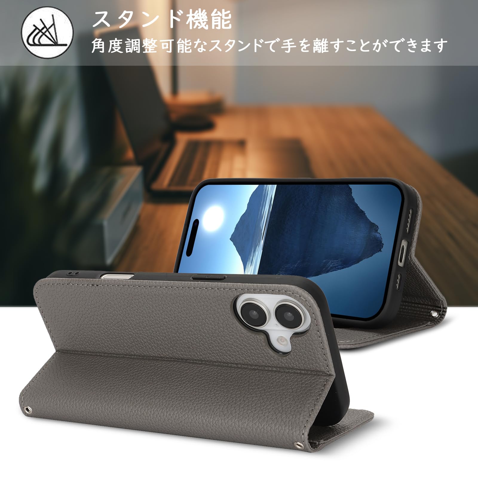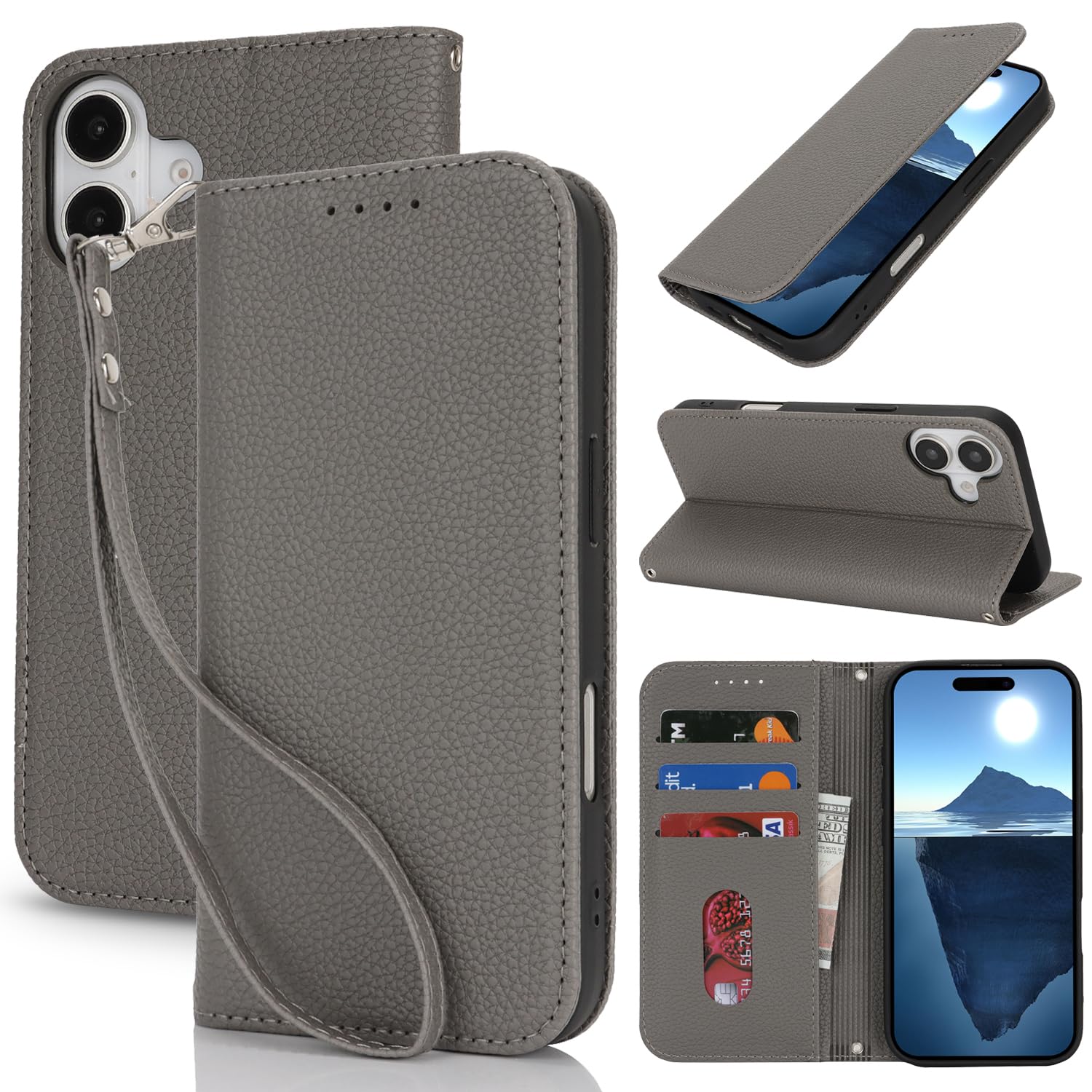 【Hamany】 iphone 16 ケース 手帳型 あいふおん16ケース ストラップ カード収納 スタンド機能 スマホケース iphone 16 マグネット式 レザー アイフォン16 ケース 耐衝撃 耐久性 耐摩擦 携帯ケース -グレー