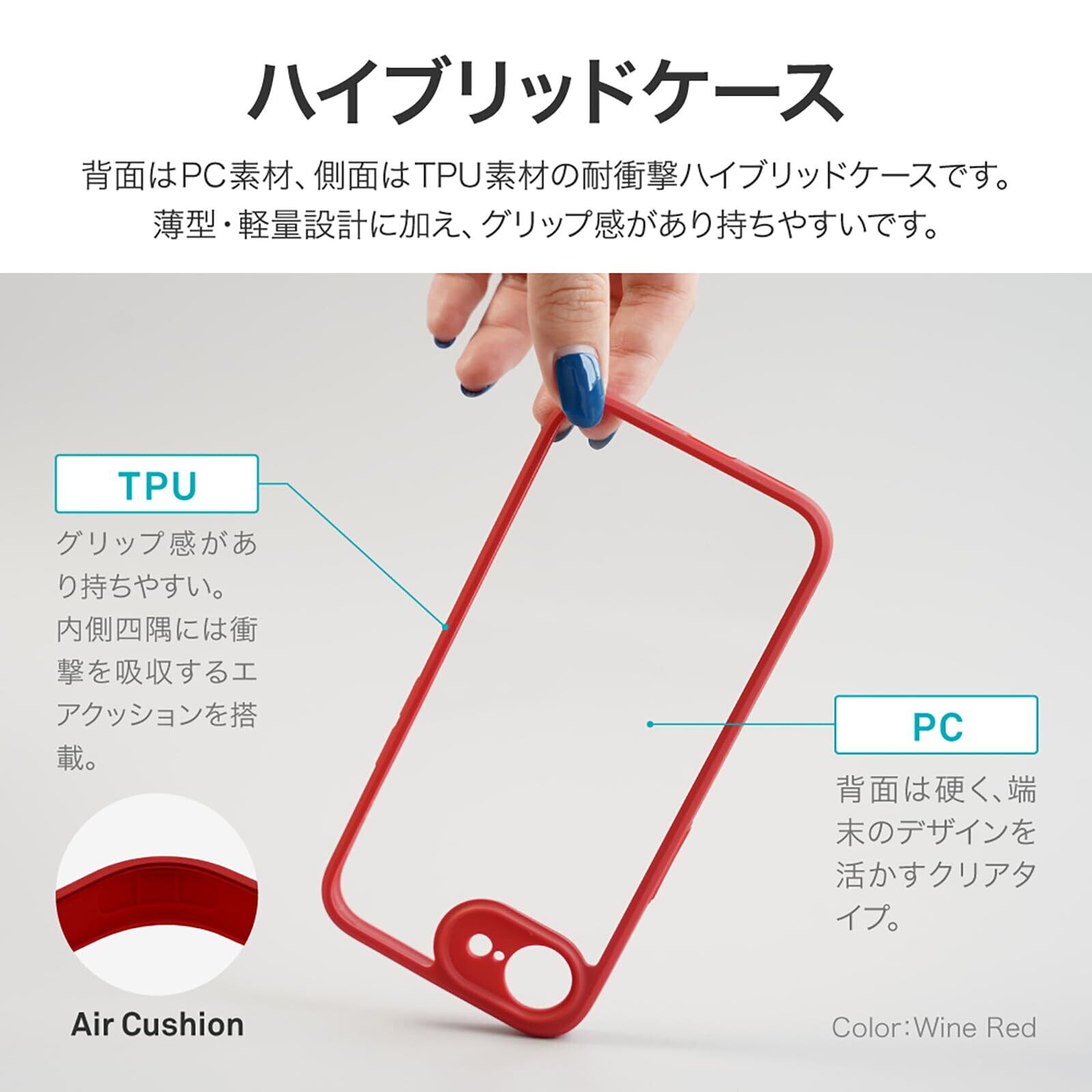 【耐衝撃】 衝撃を吸収するTPUと、硬く高透明なポリカーボネートのハイブリッドケース