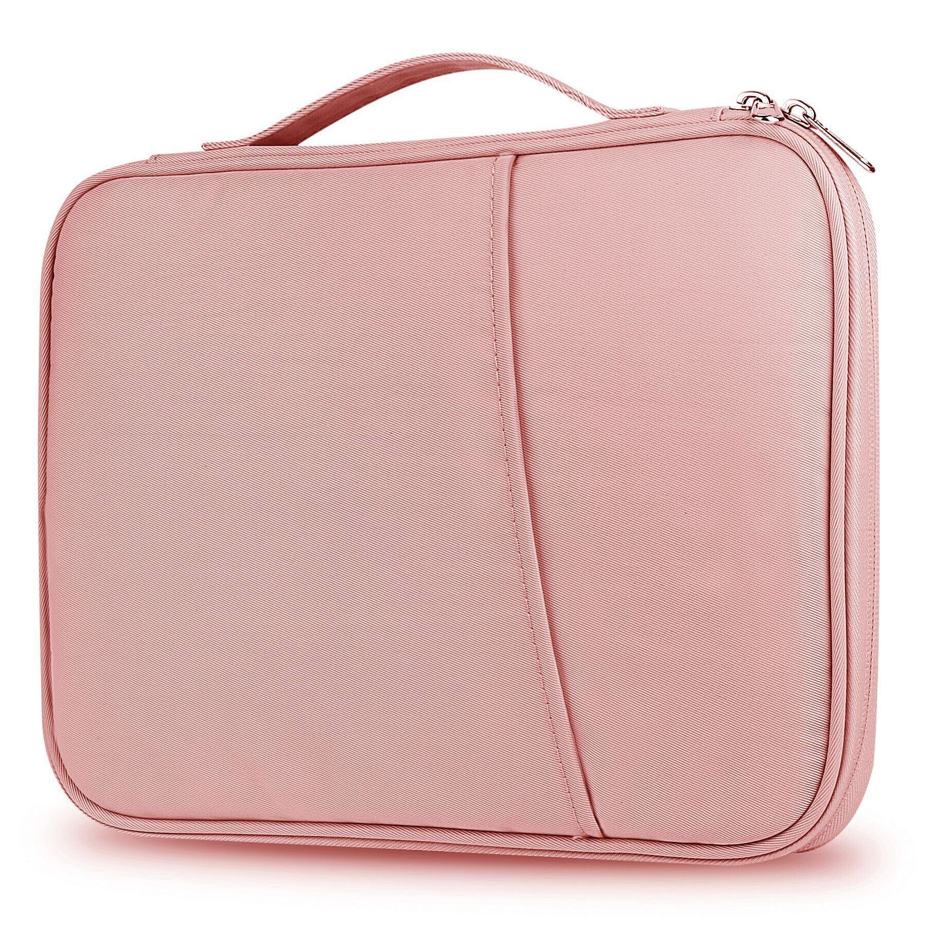 【在庫処分】タブレットスリーブケース 9-11インチ対応 軽量コンパクト 防水防震 耐衝撃 ハンドル付き 多機能ポケット タブレット・充電器・アクセサリー収納 ビジネス 旅行 インナーバッグ iPad Air/mini/Pro/Fire HD 10/Xiaomi/Lenovo等対応 (ピンク, 9-11インチ)