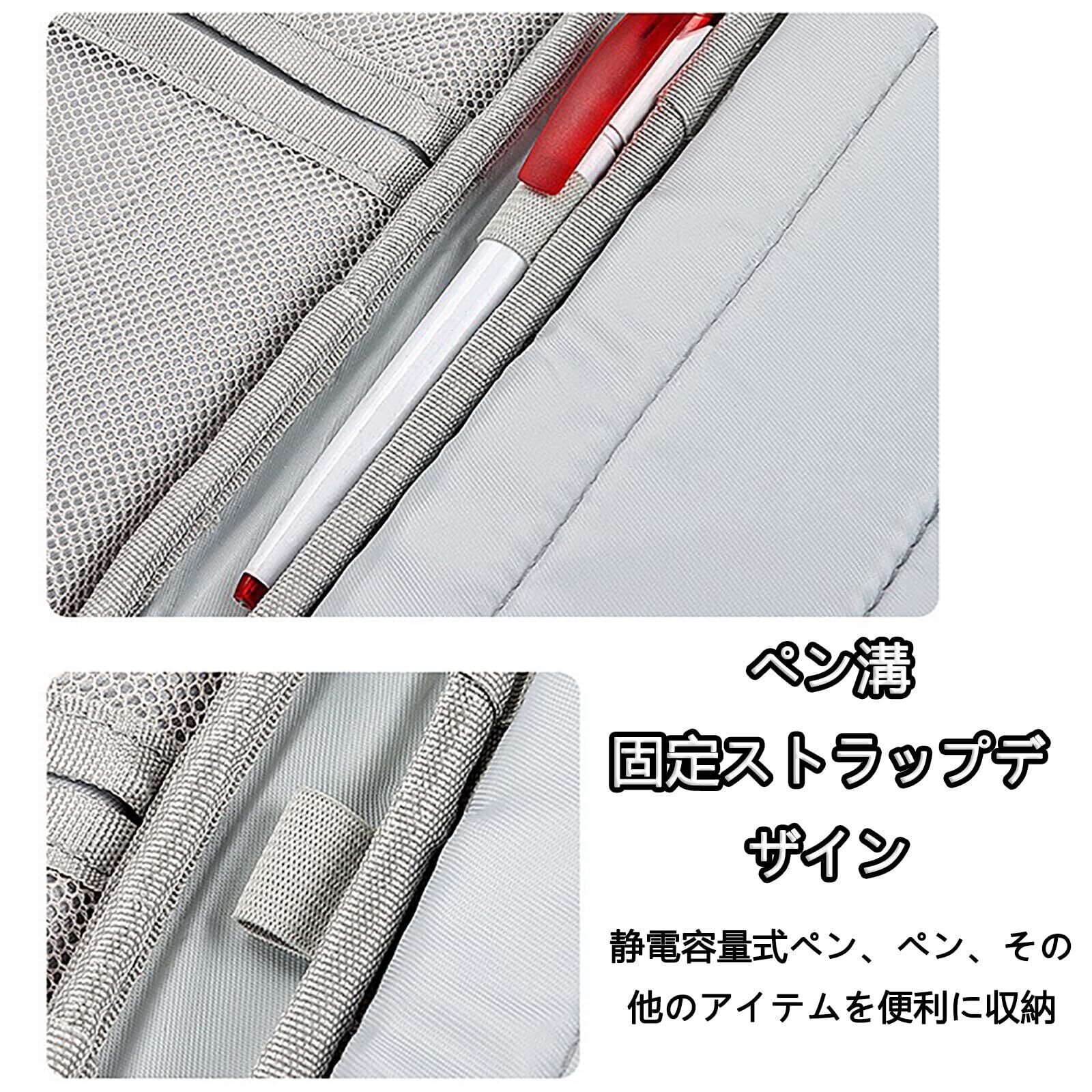 【多機能収納】区画設計、内部空間を十分に利用し、iPadを収納できるだけでなく、複数の仕切りを備え、タブレット、充電器、データケーブル、イヤホン、ノートなどを簡単に収納し、品物が整然として秩序正しく、必要な品物を迅速に取りやすくする。