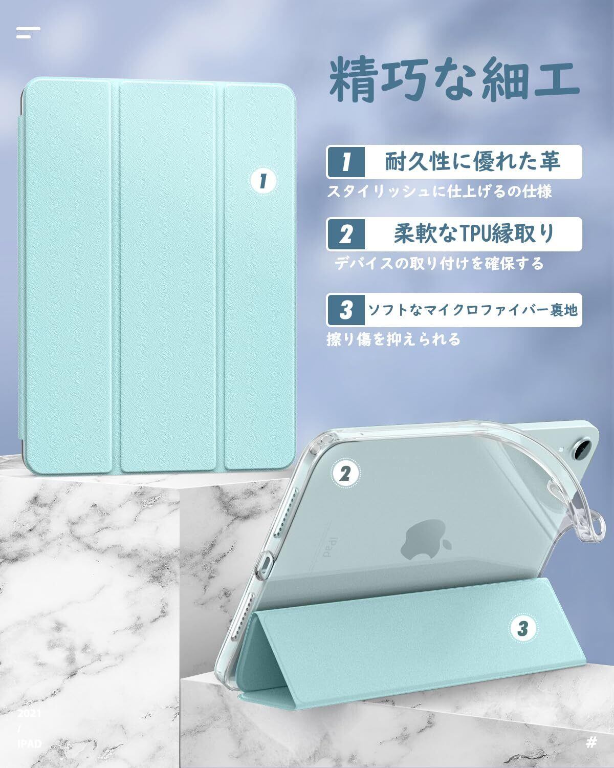 iPad Mini A17 Pro iPad Mini6 ケース Dadanism iPad mini 2024/2021 iPad Mini 第7/6世代 保護ケース iPad 8.3 インチ スマートカバー 透明感 薄型 PU レザー キズ防止 開閉式 三つ折薄型 TPU素材 スタンド機能 衝撃吸収 オートスリープ機能付き Apple Pencil 充電に対応 スカイブルー