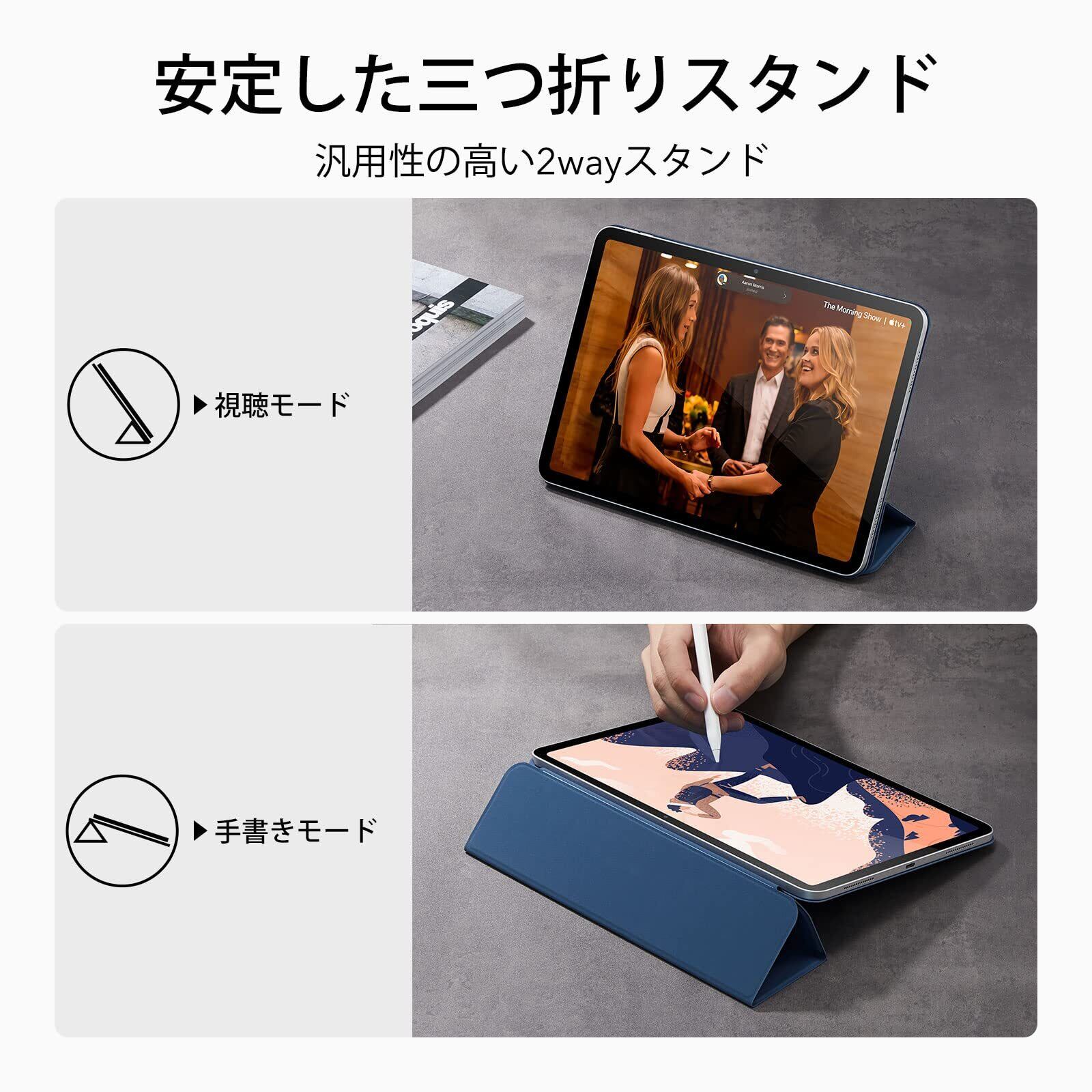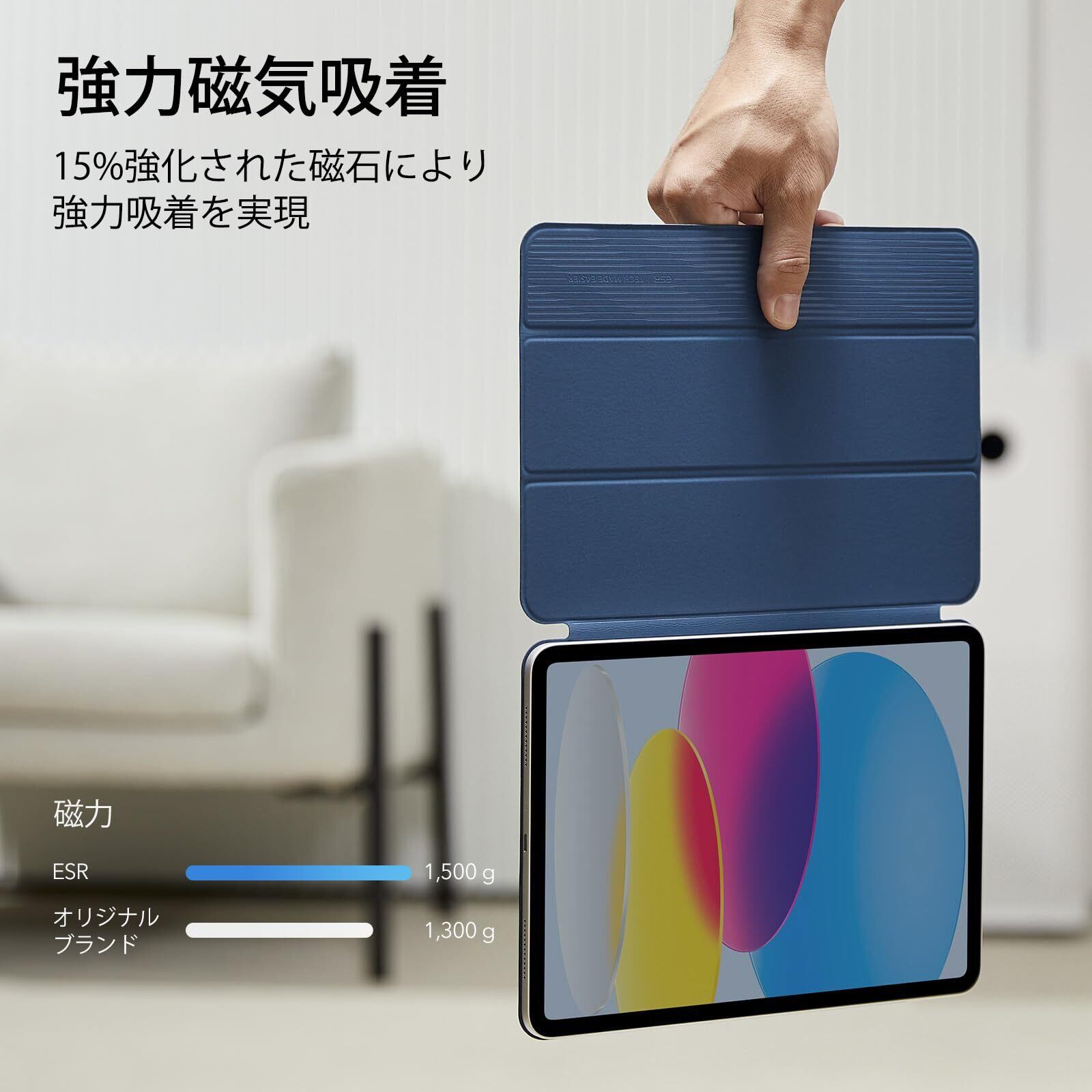 【数量限定】ESR iPad 11世代 ケース A16 (11インチ、2025モデル) iPad 第10世代 (10.9インチ、2022モデル)専用 強力マグネット吸着式 スリムな三つ折りスタンドケース 自動ウェイク/スリープ耐 久性保護 軽量 シルクのよう滑らか Reboundシリーズ ブルー