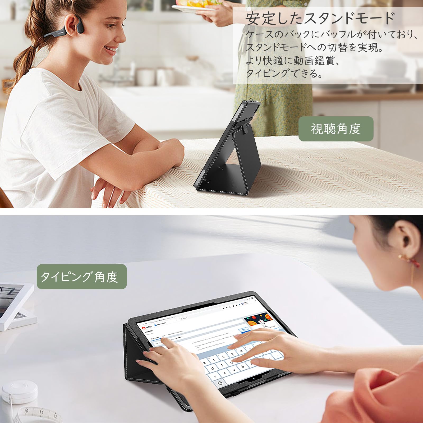 「スタンド機能」 折り目に沿って折れば、スタンドになれます。自宅で動画鑑賞、オフィスやカフェなどでもオシャレに使えます。安定した角度を維持したまま快適にお使いいただけます。