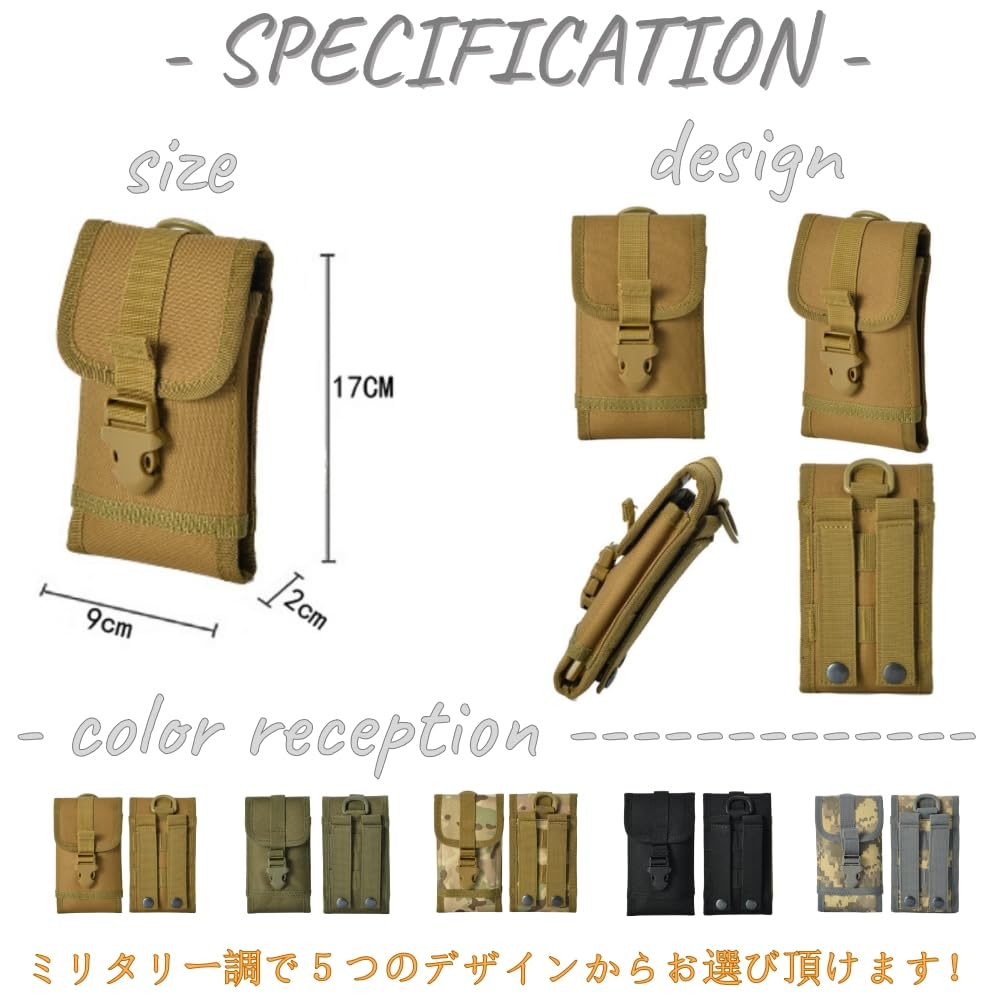【在庫処分】YOGOTI スマホポーチ 携帯電話ポーチ スマホケース ミリタリーポーチ メンズ ウエスト スマホ ベルトポーチ 縦型 防水 持ち運びに便利 アウトドア 登山 作業用 汎用 ベルト通し付き 6インチ以下の全機種対応 iPhone13 iPhone12 Pro iPhone11 iPhone8 iPhone xr対応 収納ポーチ (ミリタリー)