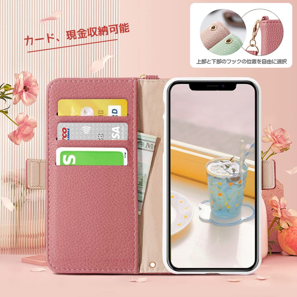 【実用性高いデザイン】①ストラップホールは上下に二つあり、ハンドストラップ付き、お好きな使い方をオプションできる。指先に通して使うのに適した長さで、落下事故の予防になります。ネックスストラップは長時間の仕事で手を解放したい時と旅行する時にオススメ ②カメラ、電源ボタン、音量ボタン、イヤホンジャック、コネクタ、スピーカーホール等に支障なく使用可能となるし、やわらかいTPUケース、着脱しやすい、縫製も一つずつ丁寧に仕上げられて、落ち着いてる色と合わせて、どんな場合でも相応しいし、プレゼントにもオススメできる手帳型です。③滑りにくく、落下時の衝撃を効率よく吸収するようにケースの各コーナー内側が設計されています。手帳型ならではの全面保護機能でディスプレイはもちろん、背面もしっかりガードします。さらにカメラレンズ保護構造でスマホ本体を傷から360度しっかり保護してくれます。サイドマグネット式で、カードをちょっと入れすぎると、パッと自動的に開けないので、保護性優れる