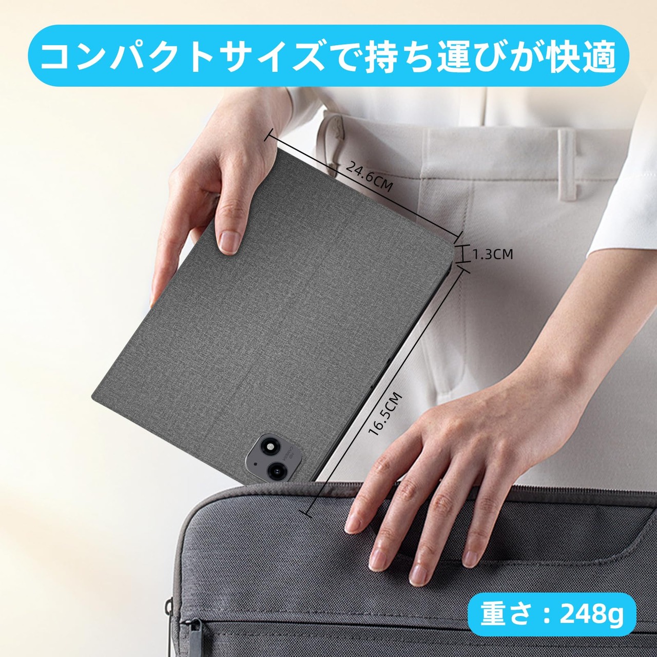 【持ち運びに非常に便利】:A60専用手帳型ケースのサイズは24.6cm×16.5cm×1.3cm、重さは約248gです。A60タブレットをしっかり保護しつつ、コンパクトなデザインにより、持ち運びも非常に便利です。外出先や旅行時でも簡単にバッグに収まり、移動中も安心して携帯できます。持ち運びやすさと安全性を兼ね備え、A60タブレットを守りながら快適に使用できます。