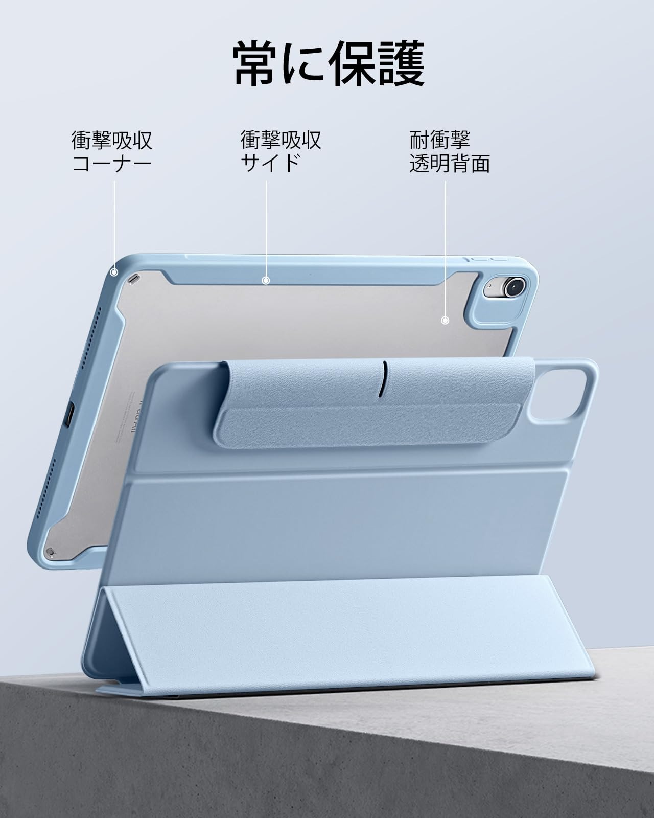 【2022最新】ESR iPad Air 11インチ ケース (M3/M2、2025/2024) iPad Air 第5/4世代 ケース(2022/2020)専用 Pencilホルダー付き 取り外し可能マグネットカバー 縦置き/横置きスタンド Pencil Pro/USB-C完全対応 Rebound 360シリーズ スカイブルー