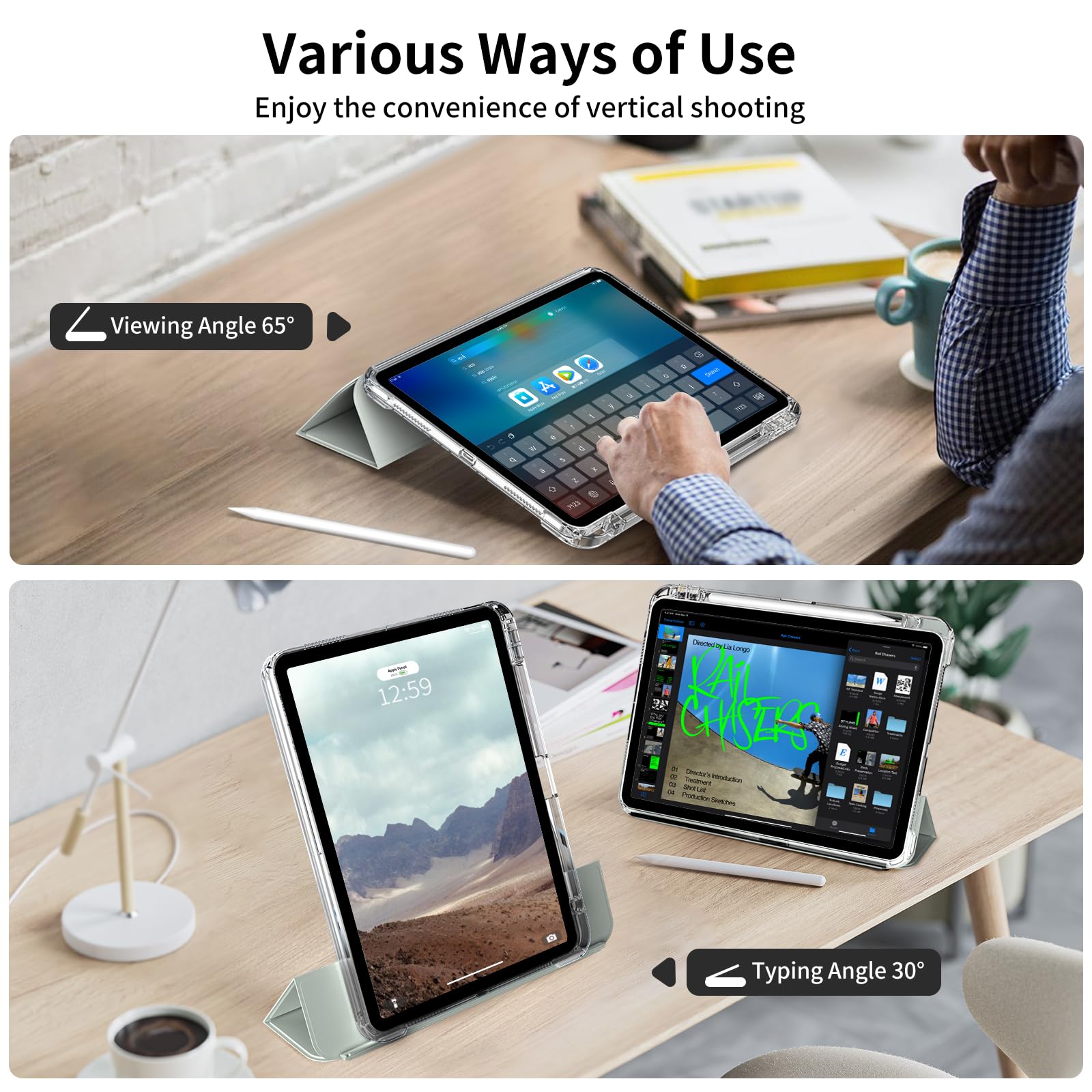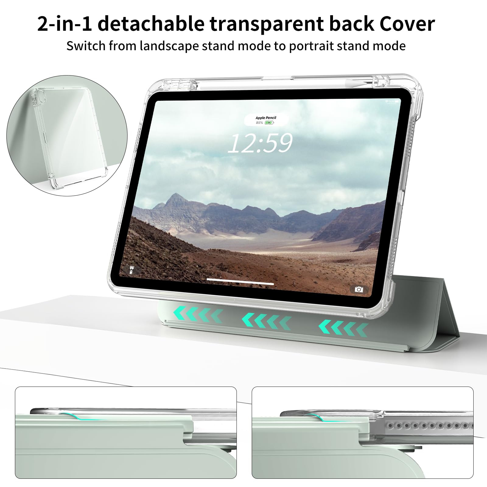 【取り外し可能なカバー&Pencil収納】 取り外し可能なシェルは、ハンドヘルドやゲームのニーズに合わせて分解して個別に使用できます。三つ折スタンドタイプなので、横向きに立てかけて、動画視聴、読書、WEBなどに便利です。便利なペンホルダーが付き、ペンシル紛失せずご安心利用頂けます。