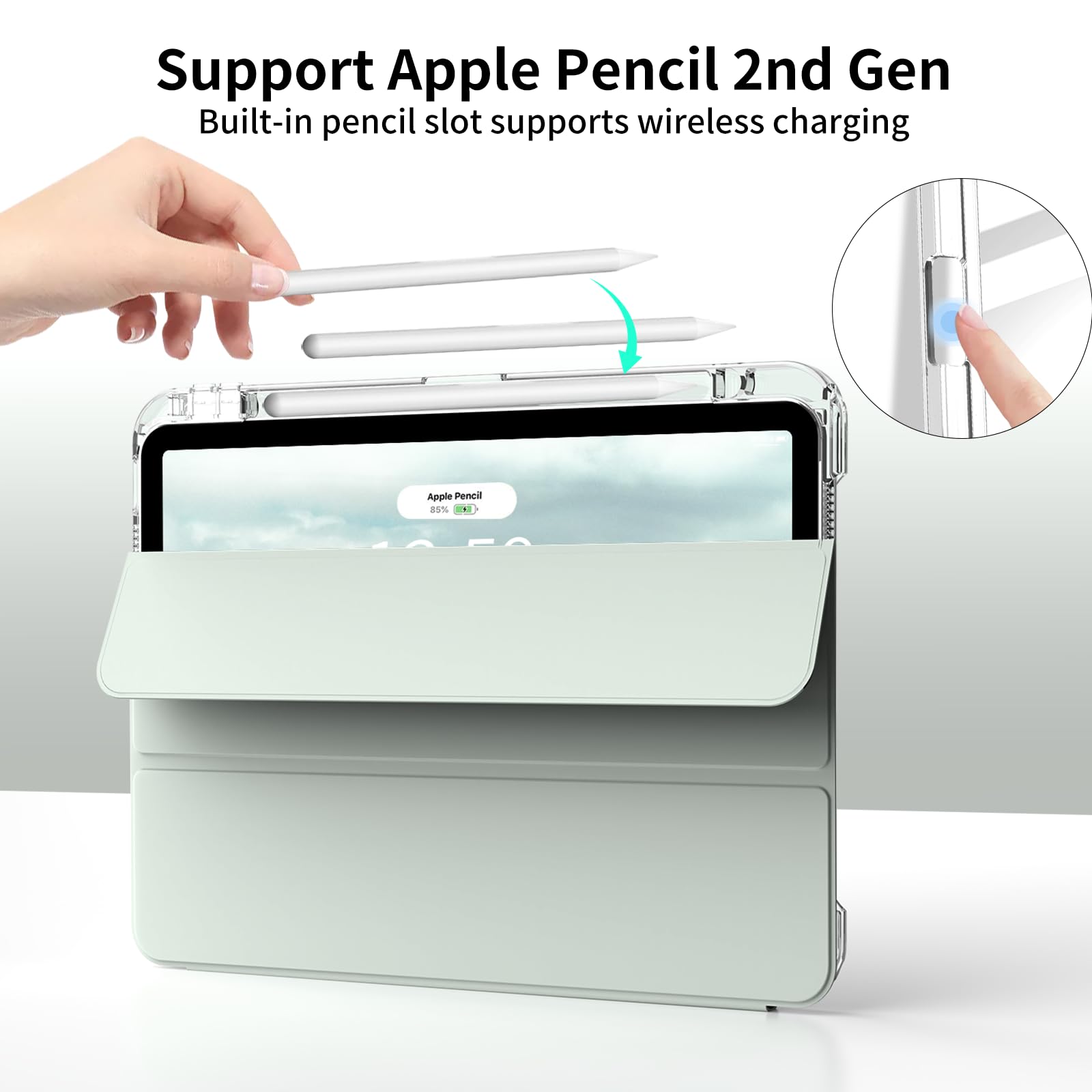 【在庫セール】Aoub iPad 11世代 10世代 ケース A16 11インチ 10.9インチ iPad 分離式 ケース 第10世代 (2025/2022)対応 アクリル 透明バックカバー Pencil 収納可能 PU合成レザー 三つ折スタンド オートスリープ機能 軽量 薄型 傷つけ防止 ライトグリーン