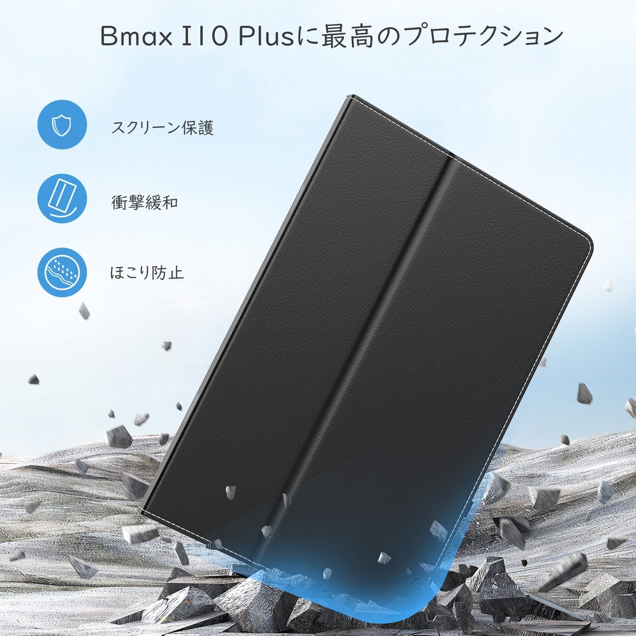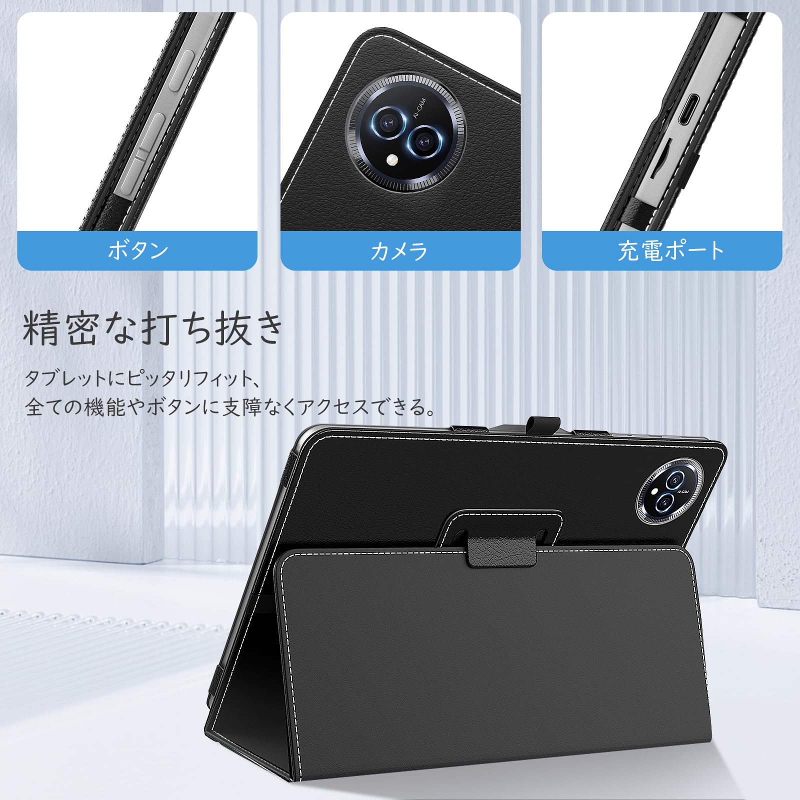 Bmax I10 Plus ケース 10.1インチ Android 15 オクタコアプロセッサ TiMOVO bmax i10plus カバー PUレザー 全面保護 耐衝撃 キズ防止 スタンド機能 手帳型 ハンドストラップ付 タブレット10.1インチケース ブラック