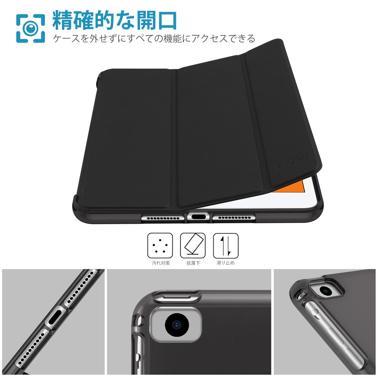 ProCase iPad Mini 5/4/3/2/1 保護ケース 三つ折り フォリオ TPUバック スマートカバー スタンド機能付き 適用端末:7.9” iPad Mini 5 (2019)/ Mini 4 Mini 1 2 3‐ブラック