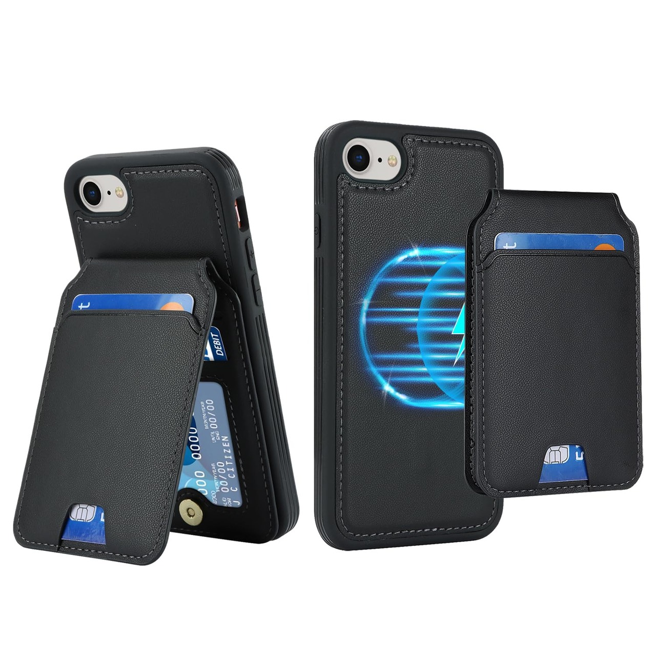 【数量限定】Havaya iPhone se3 ケース MagSafe 対応 iPhone SE ケース 第二世代 マグセーフ 分離式 耐衝撃 iPhone8 iPhone7 背面カード収納 ワイヤレス充電対応(4.7インチ対応)-ブラック
