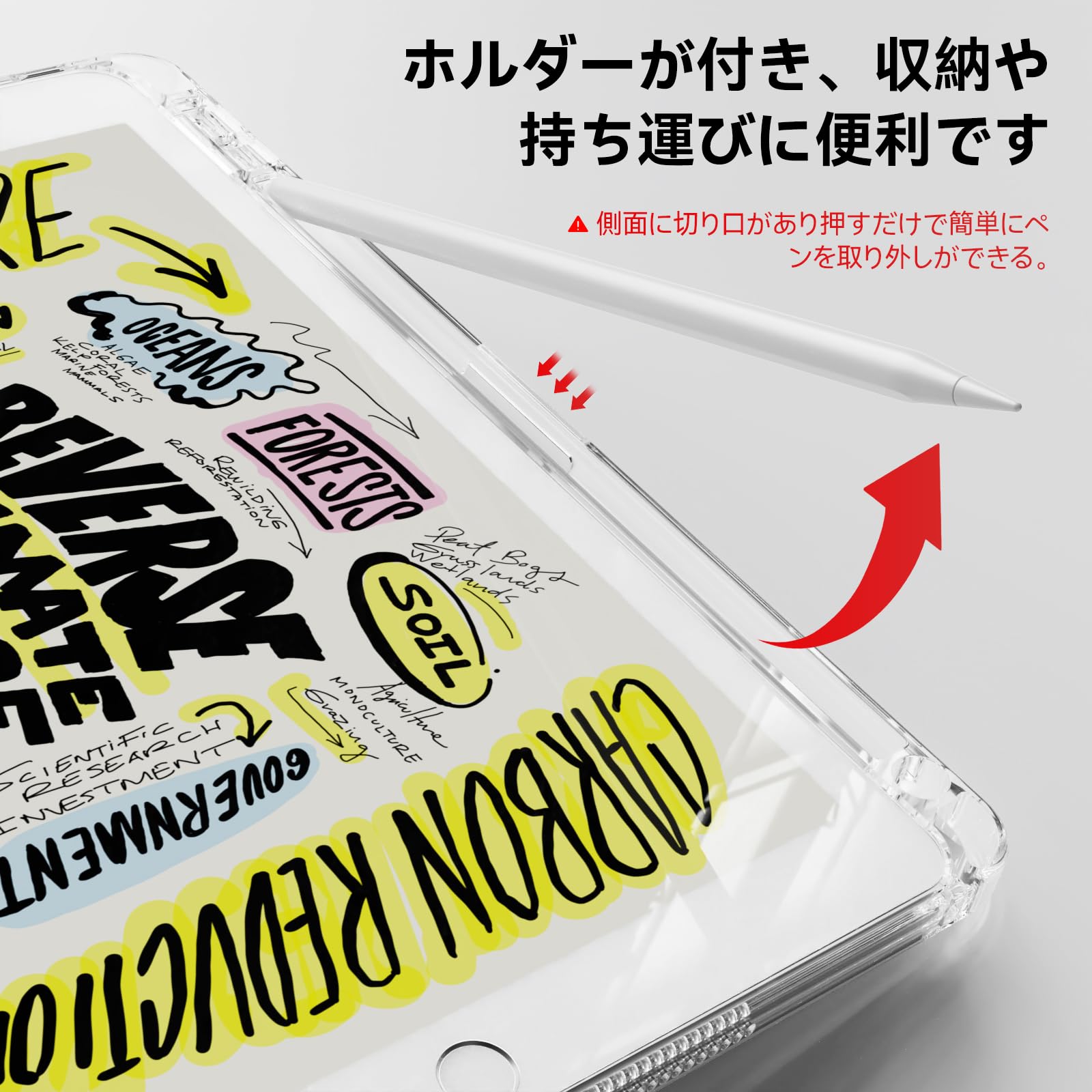 ღ「Pencil収納可能」便利なペンホルダーがあるので、ペンシル紛失せずご安心利用頂けます。収納や持ち運びに便利で、落ちる心配はいりません。いつでもどこでもiPadを快適に使えます。 (ご注意:当該商品はケースだけで、iPad本体やPencilなどがついていません。)