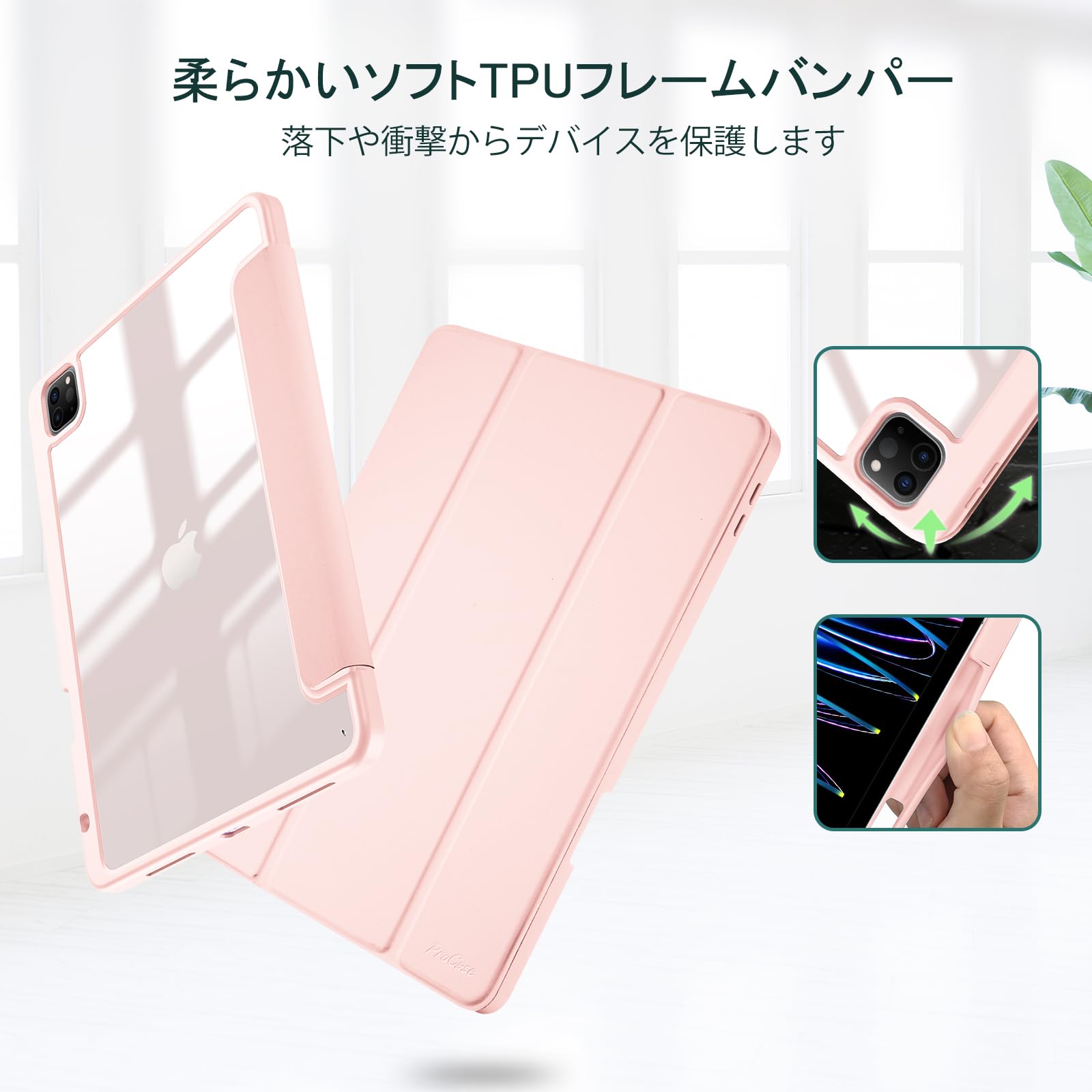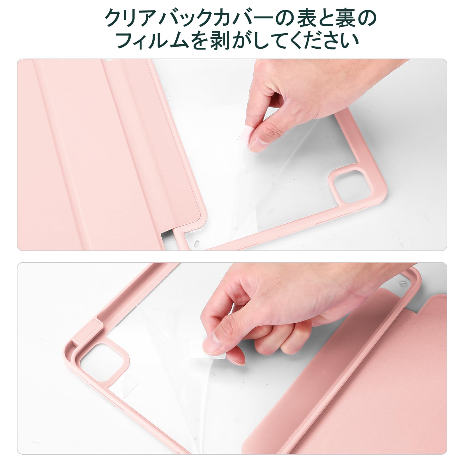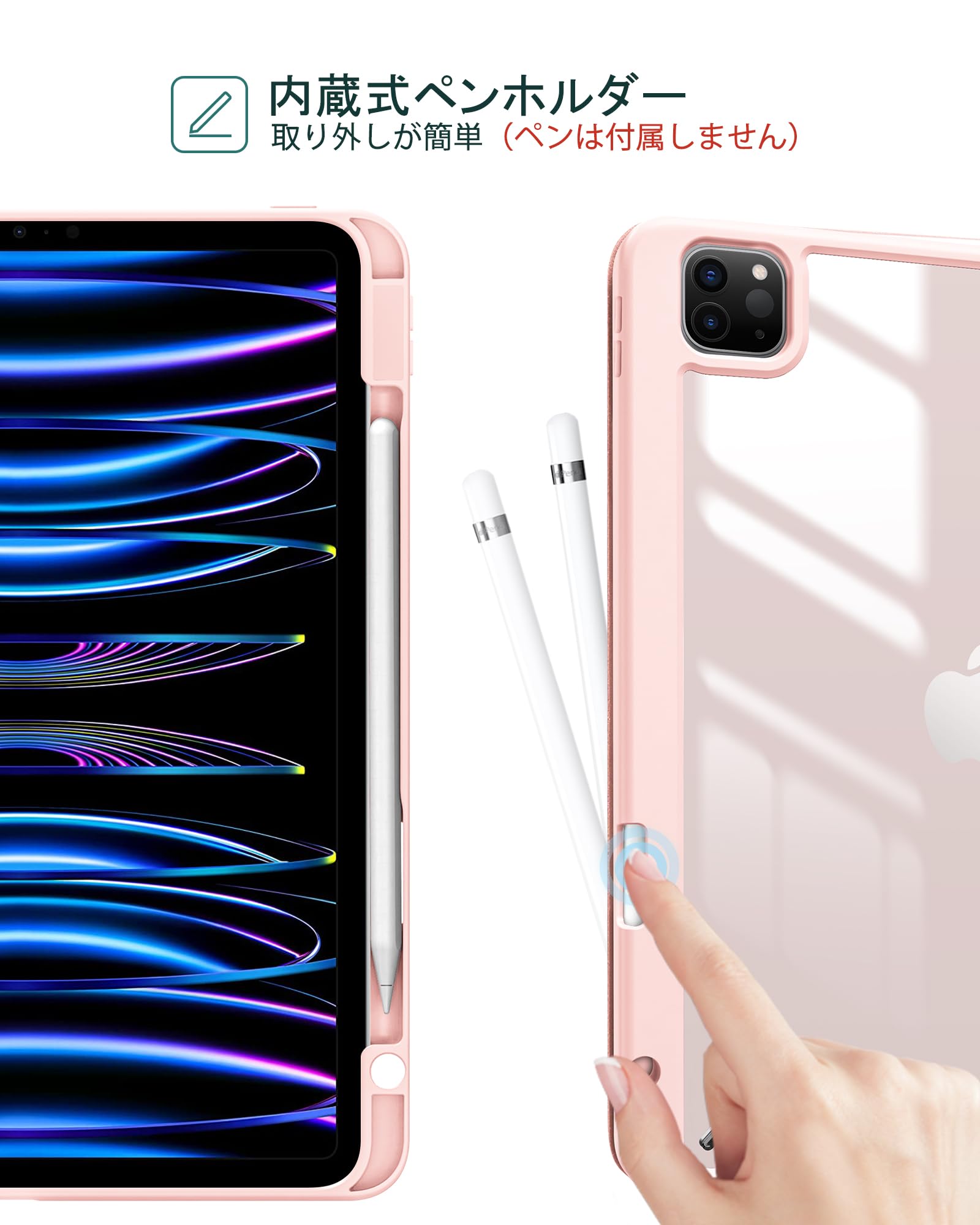 ProCase iPad Pro 11 ケース 第4/3/2/1世代に適用(2022 2021 2020 2018) 透明 クリアバックカバー ペン収納 耐衝撃 三つ折り スタンド スマートカバー - ピンク