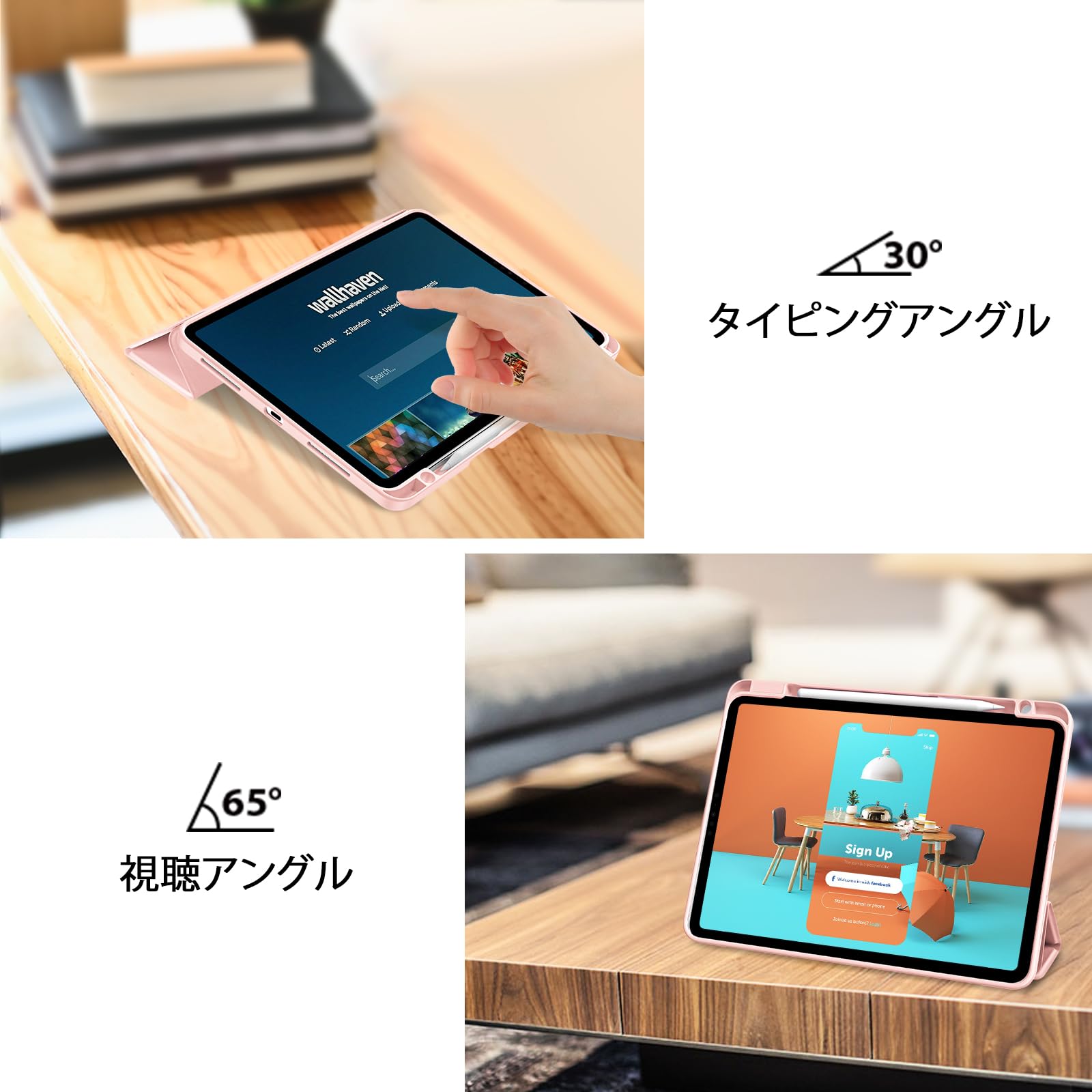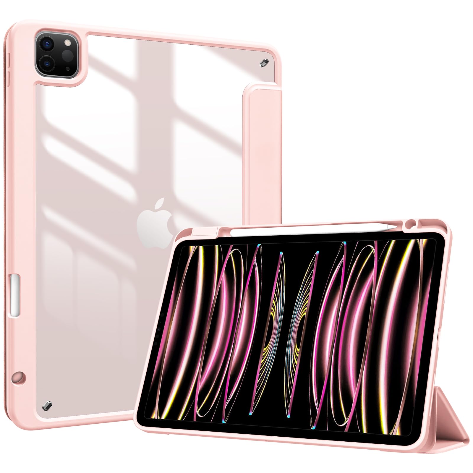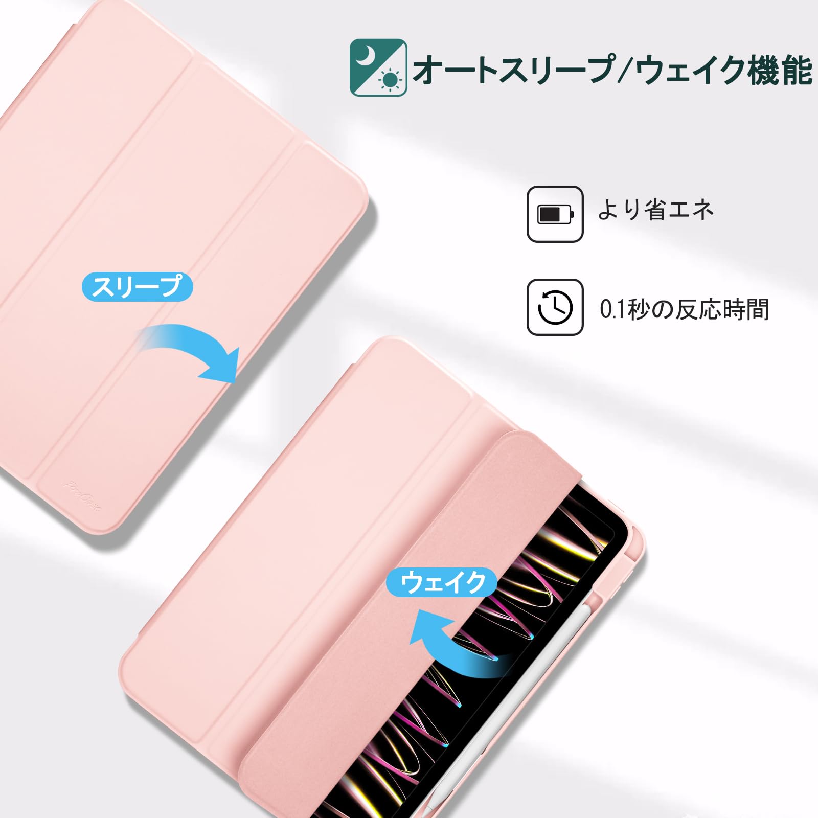 ProCase iPad Pro 11 ケース 第4/3/2/1世代に適用(2022 2021 2020 2018) 透明 クリアバックカバー ペン収納 耐衝撃 三つ折り スタンド スマートカバー - ピンク