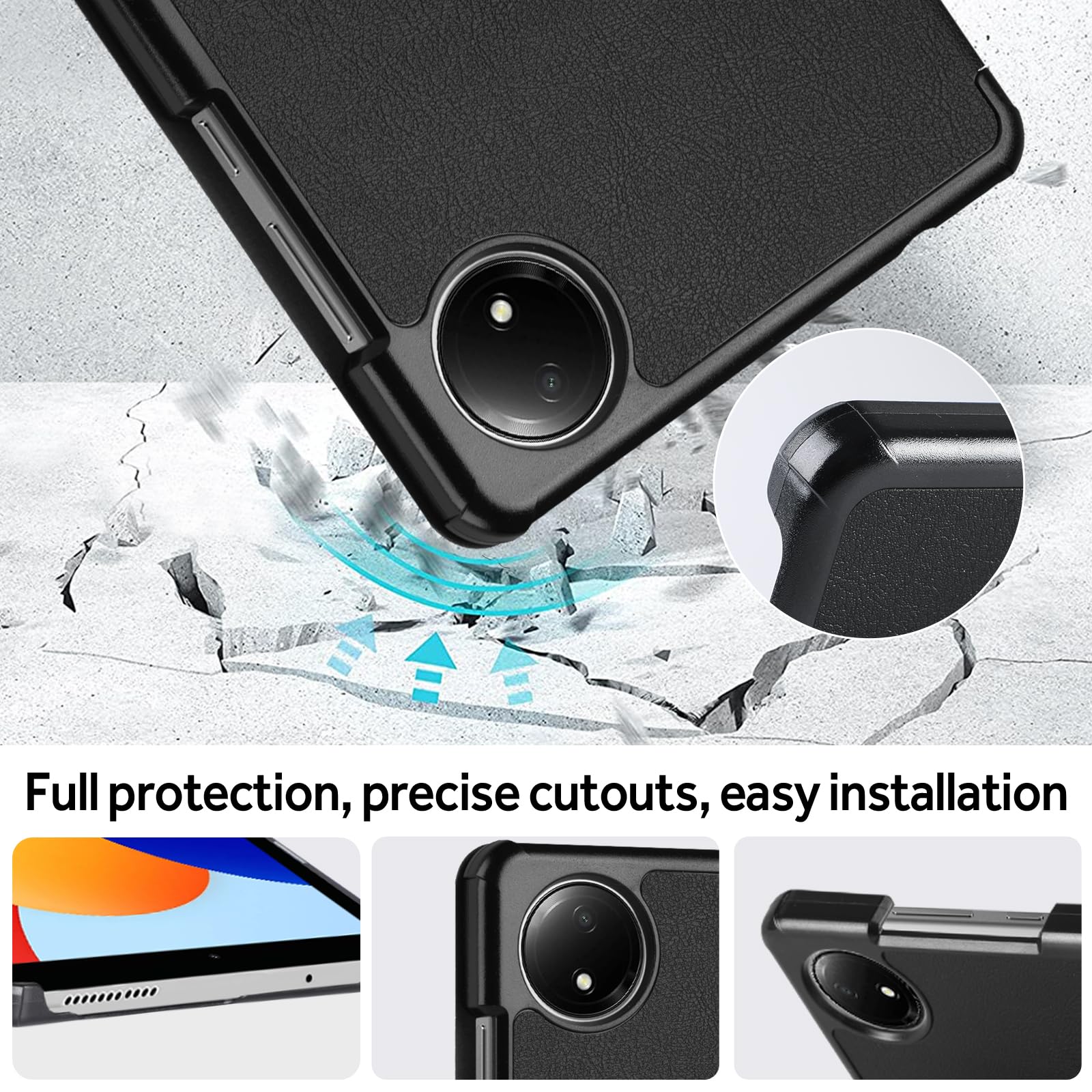 【数量限定】Hianjoo Xiaomi Redmi Pad SE 4G 8.7インチ 対応 ケース タブレットケース Xiaomi Redmi Pad SE 8.7インチ 対応 カバー スタンド機能付き オートスリープ機能 全面保護ケース 耐衝撃 擦り傷防止 - ブラック