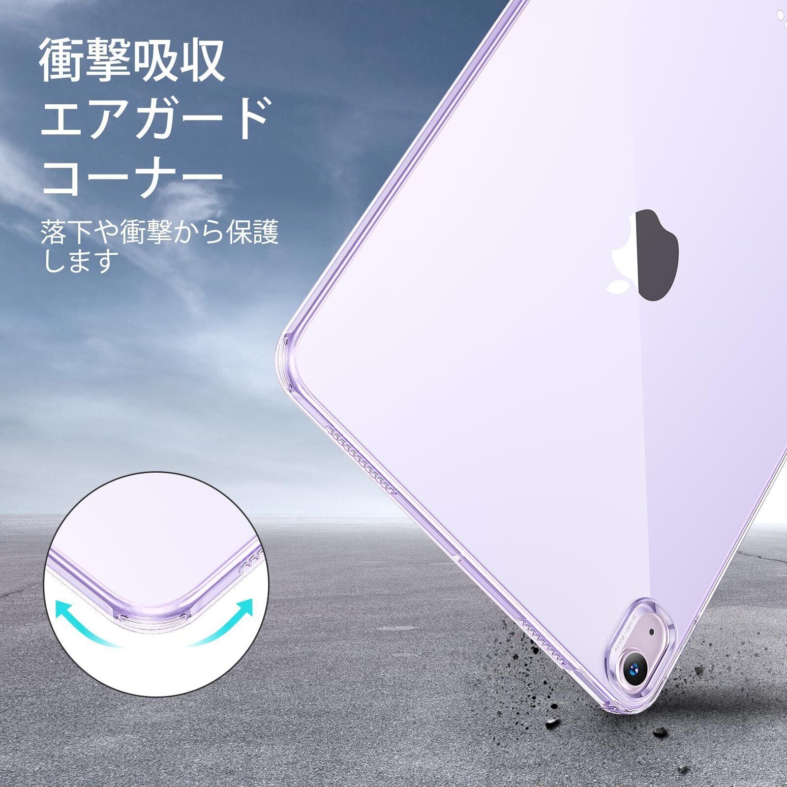 【在庫セール】ESR iPad Air 11インチ ケース (M3/M2、2025/2024) iPad Air 第5/4世代 ケース(2022/2020)専用 スリム&軽量 耐黄変性 透明背面カバー Pencil Pro/USB-C対応 Zeroシリーズ パープルクリア