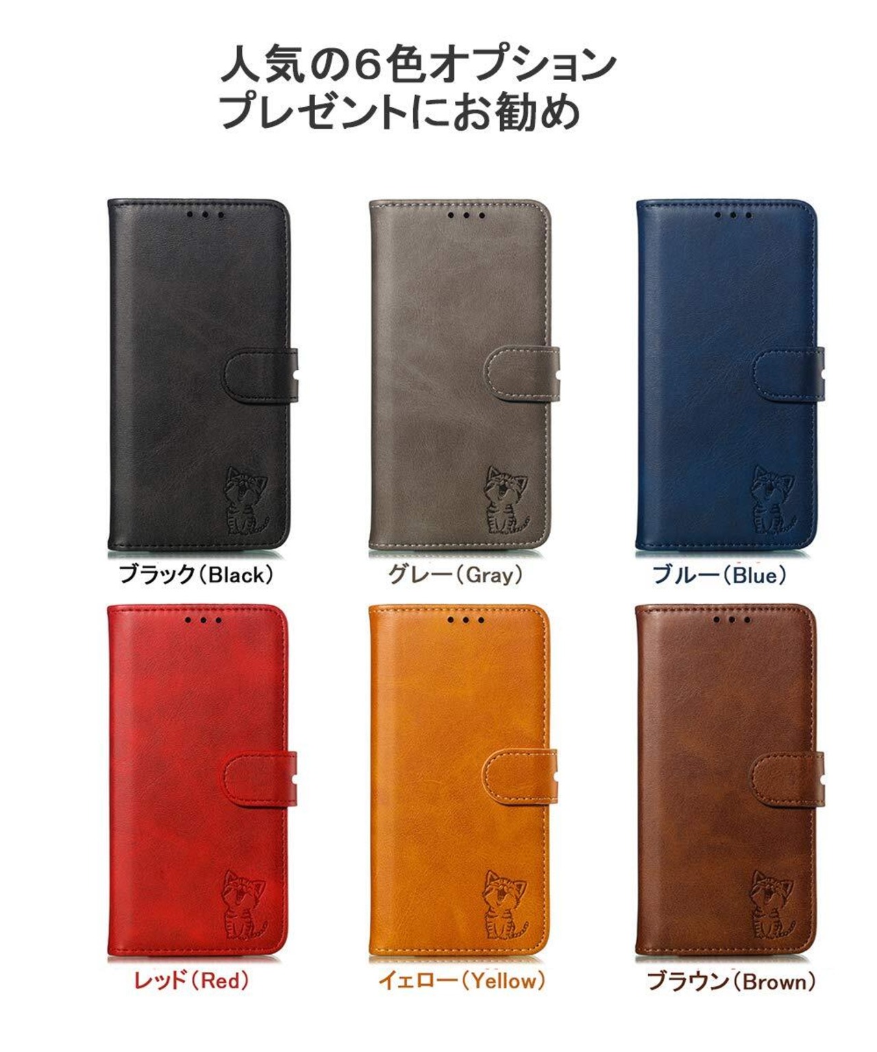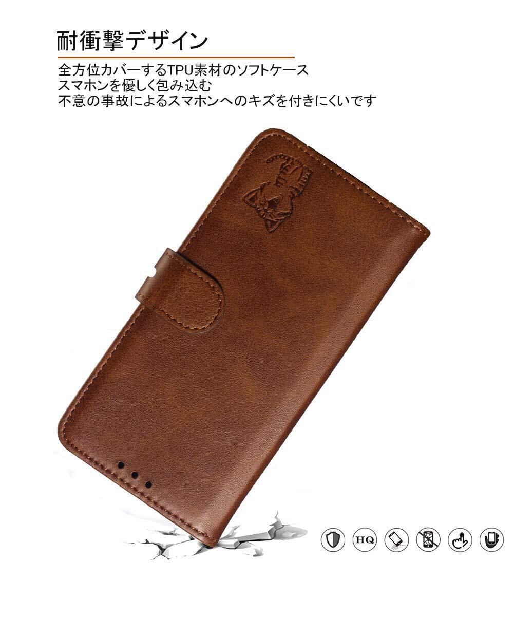 ❹【スマイル猫ちゃんのデザインと上質な素材】型押しの可愛い猫のモチーフと上品なレザーの組み合わせるケースであり、高級感ある色合いでちょっぴり大人なスマホケース。裏側ケースはソフトのtpuで仕上げられて、着脱も便利です。