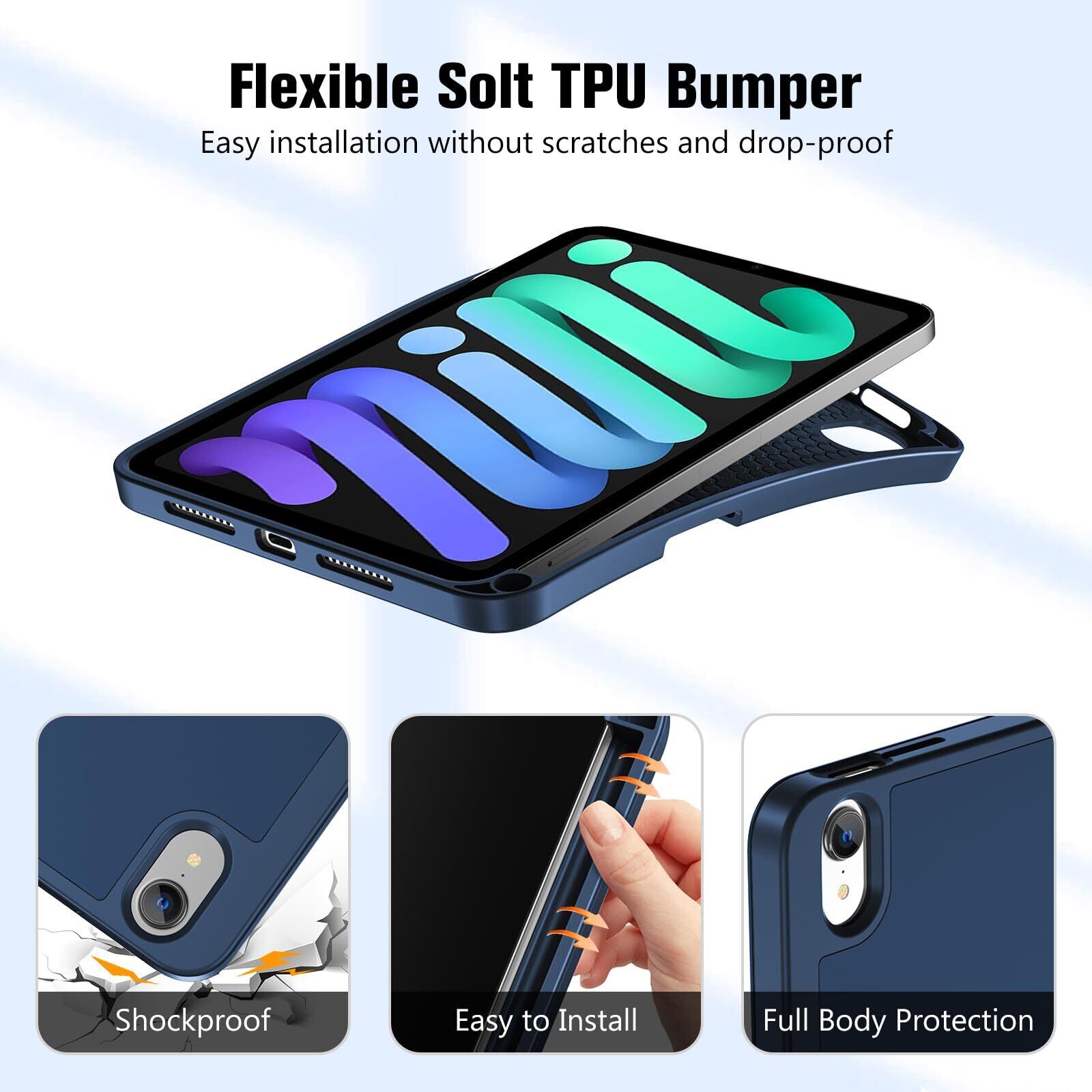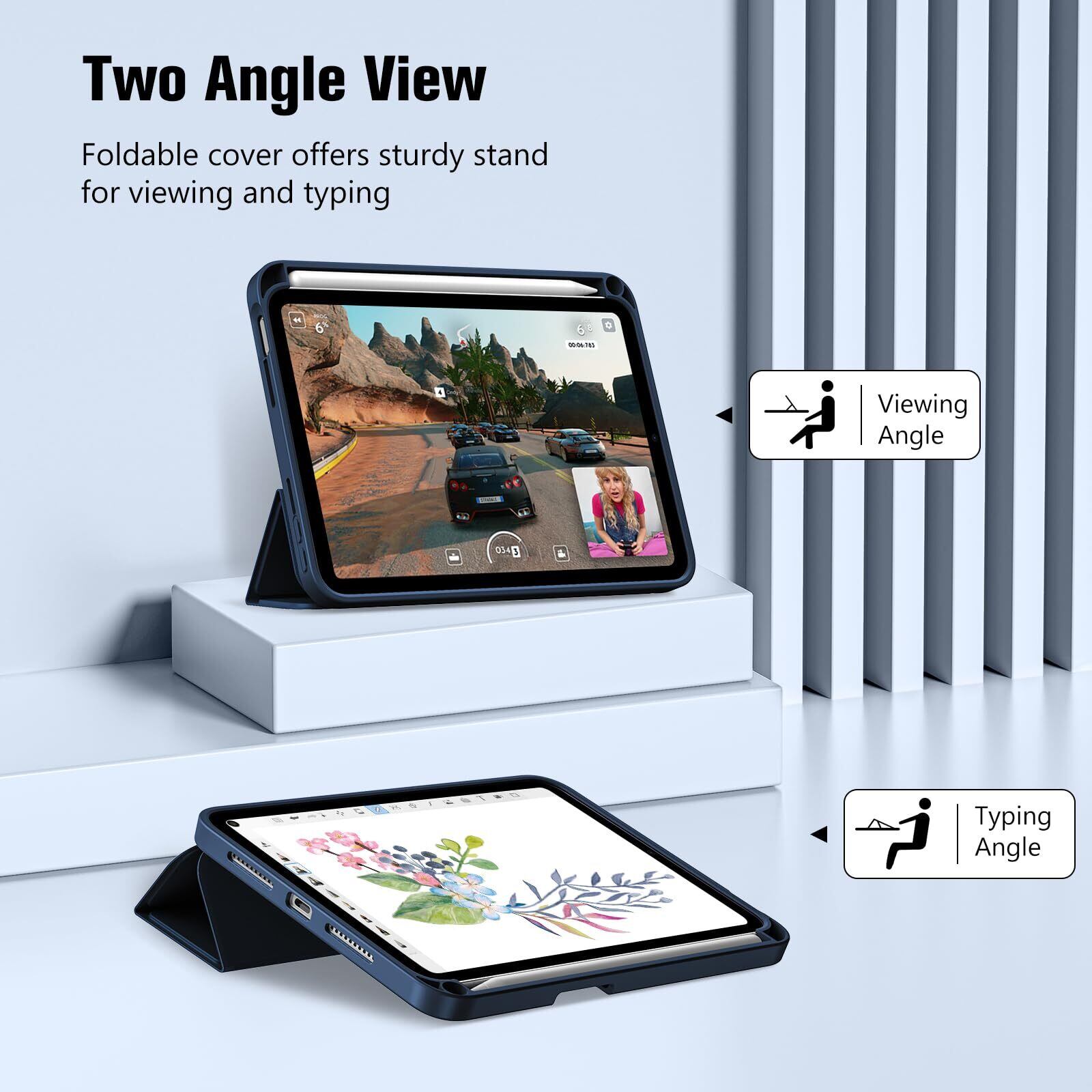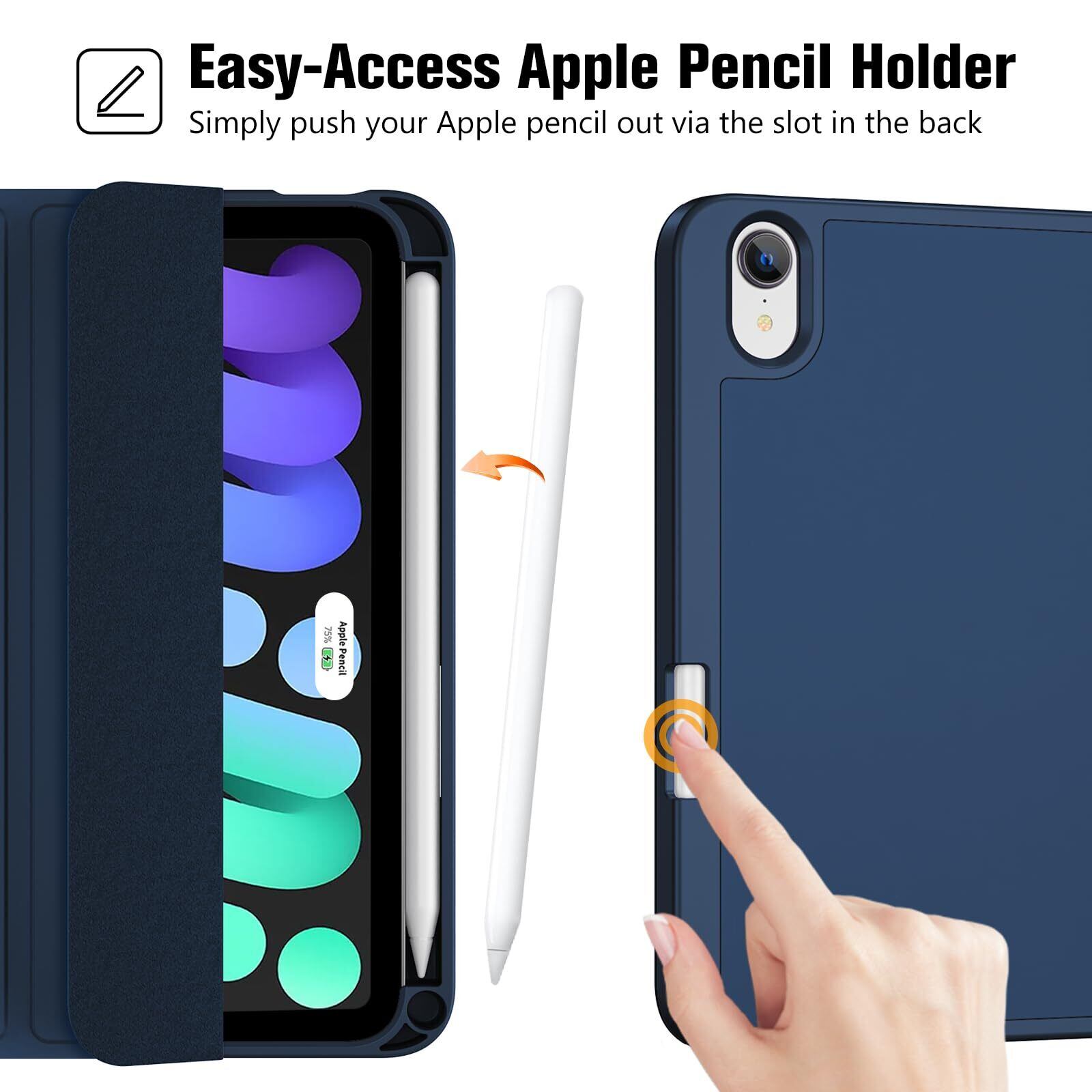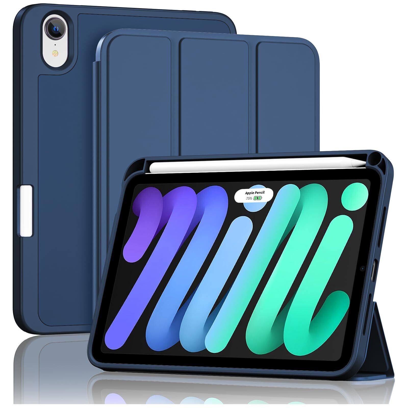 【新春セール】ProCase iPad Mini A17 Pro 第7世代 (2024発売) Mini6 第6世代 (2021発売) ケース 8.3インチ ペンホルダー付き オートスリープ/ウェイク機能 耐衝撃 三つ折りスタンド 適用機種:iPad Mini A17 Pro 第7世代 2024、iPad Mini 6世代 2021 - ダークブルー