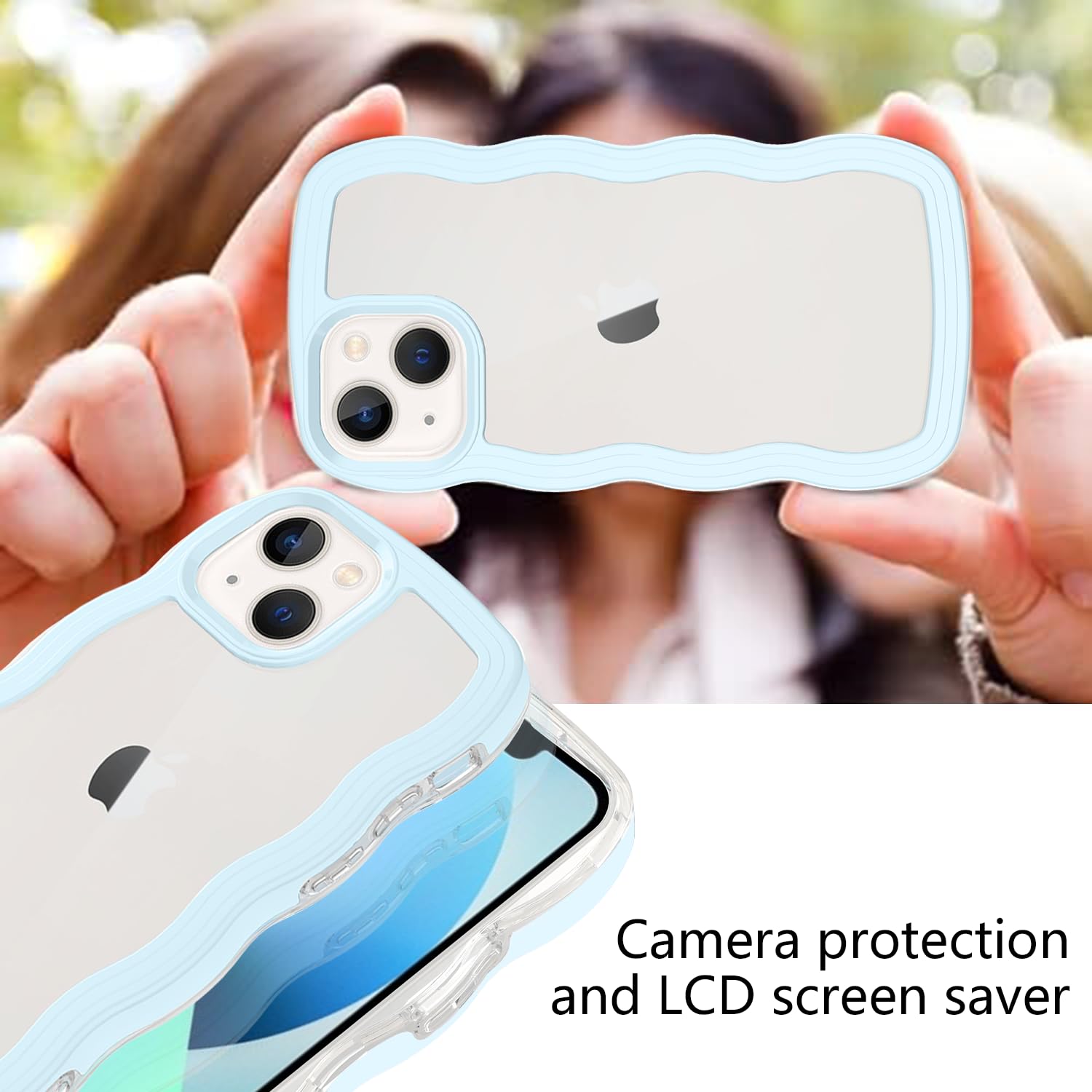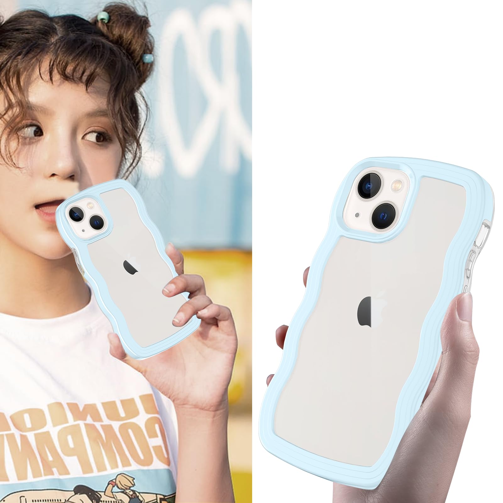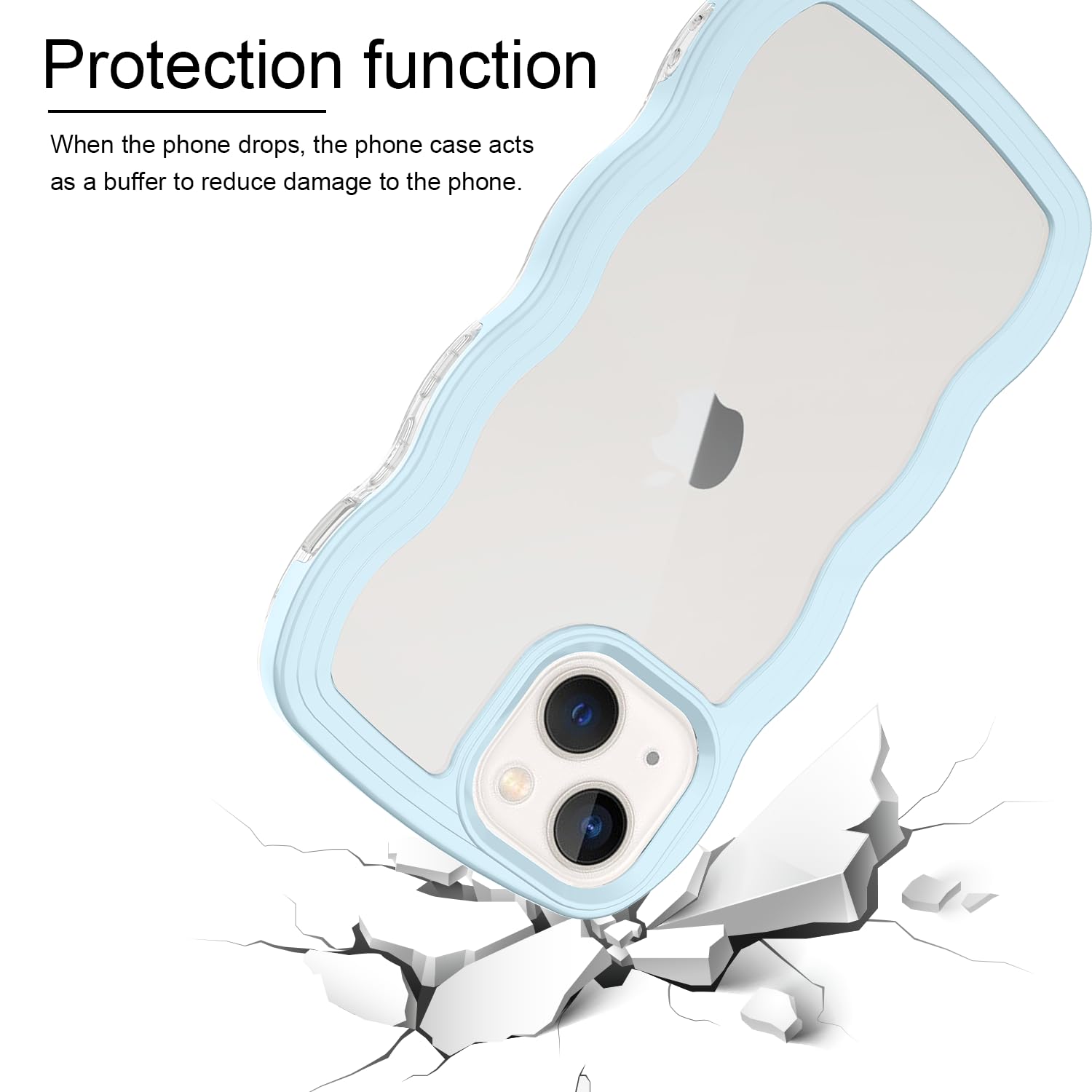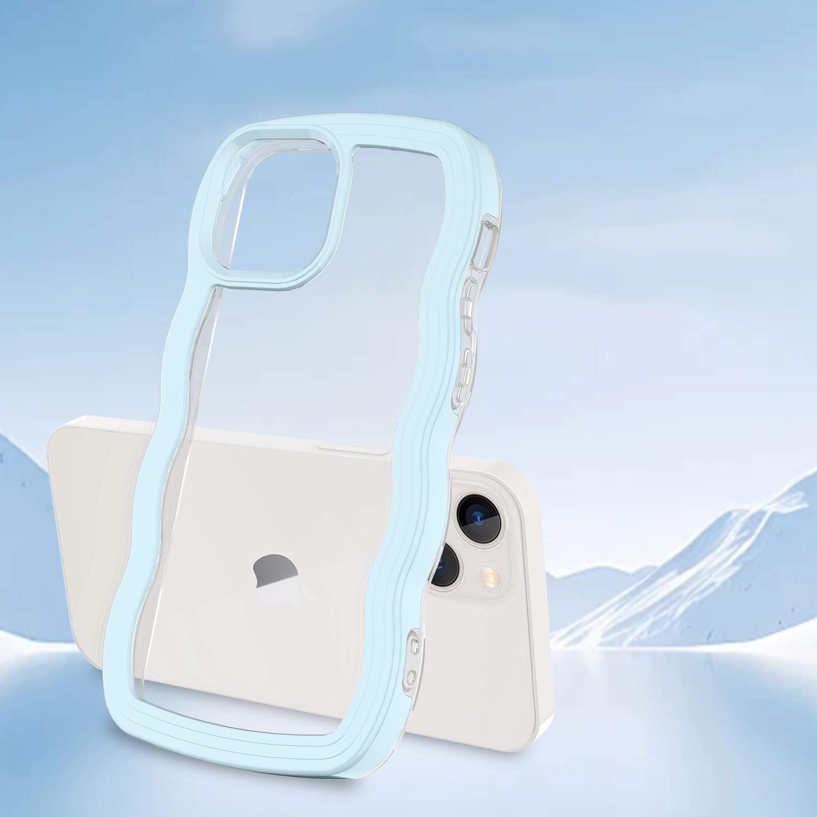 iPhone 13mini ケース クリア ウェーブ アイフォン 13mini TPU波状フレーム うねうね アイフォン13mini 滑り止め スマホケースウェーブ デザイン 手にフィット 韓国 可愛い 女性用 女子向け 透明 ケースカバー 人気 落下防止 耐衝撃 ストラップホール付き アイフォン13mini なみなみ ワイヤレス充電対応(iPhone 13mini-ブルー)