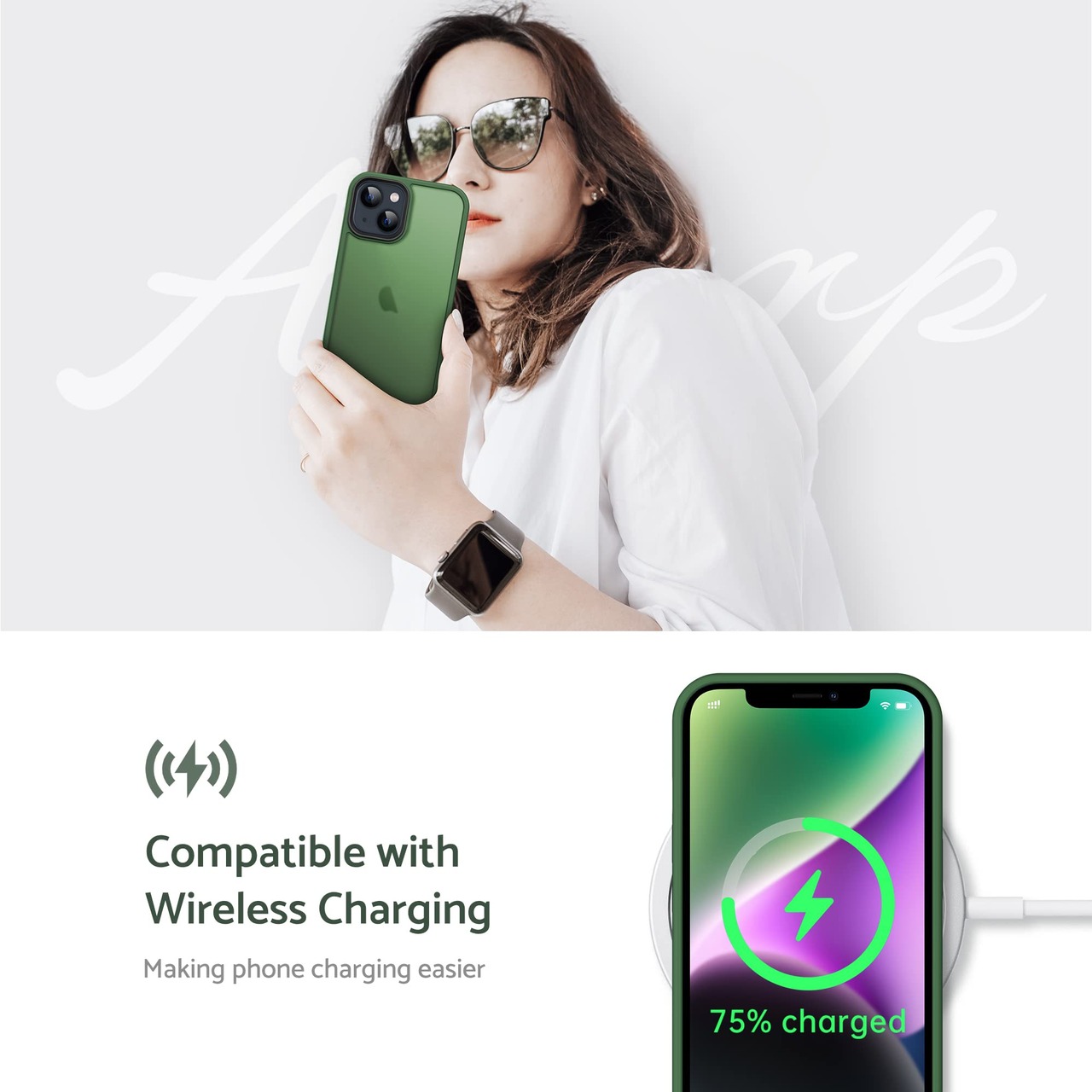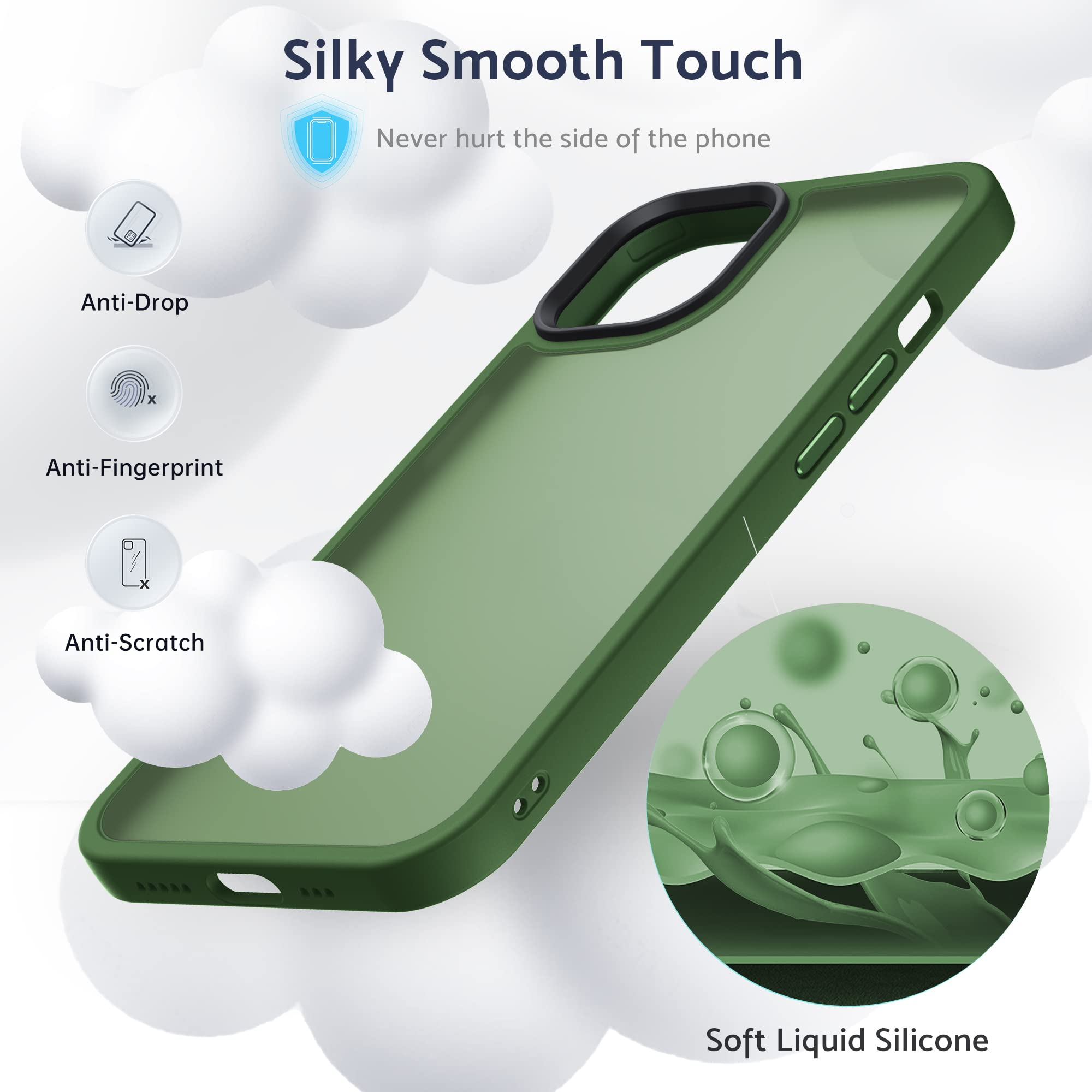 Anqrp iPhone 14 Plus 用 ケース 半透明 耐衝撃 滑り止め 米軍MIL規格 指紋防止 マットケース ストラップホール付き ワイヤレス充電対応 スマホケース アイフォン 14 Plus カバー 6.7インチ グリーン