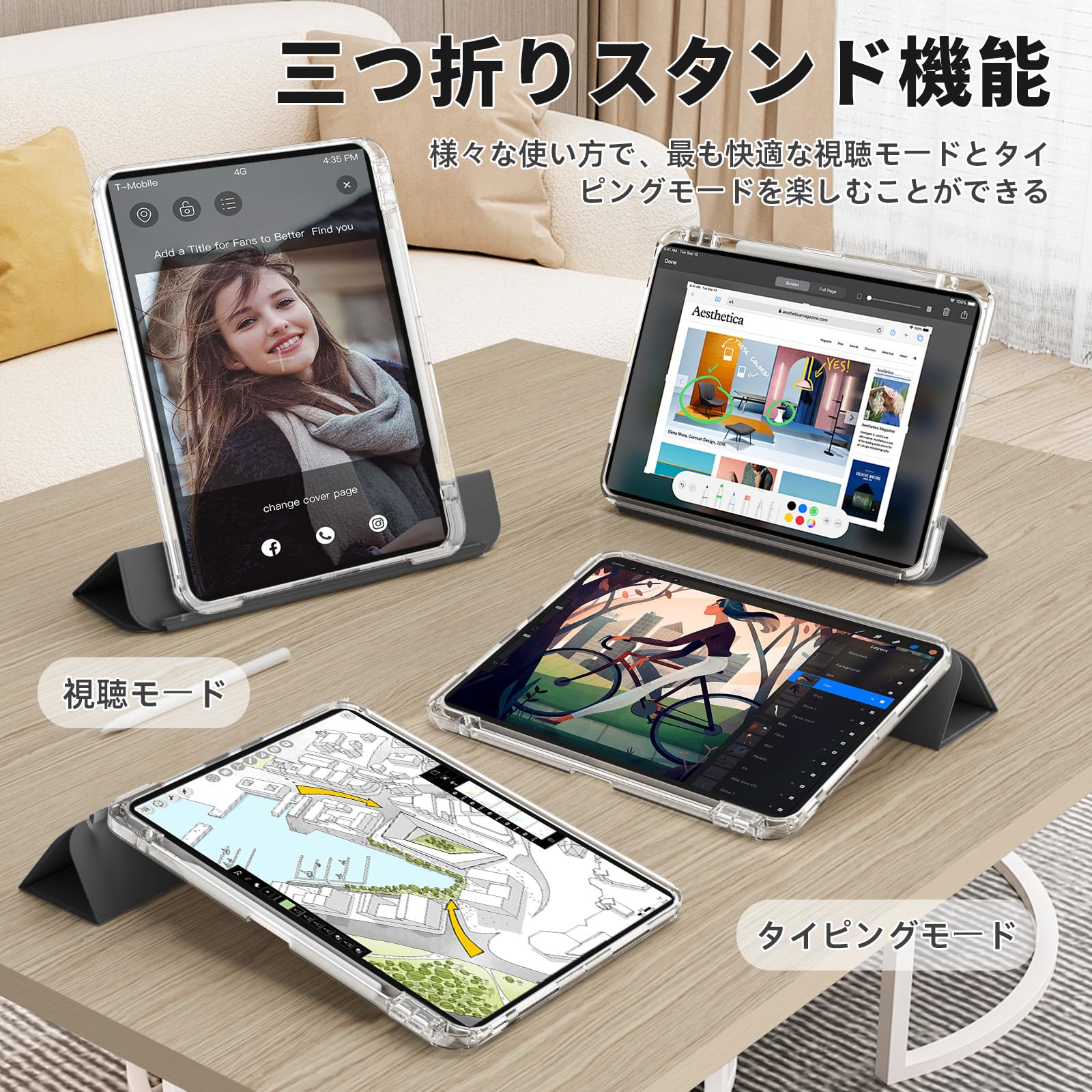❛‿˂̵✧「様々な使用モード」 取り外し可能なシェルは、ハンドヘルドやゲームのニーズに合わせて分解して個別に使用できます。 縦向きと横向きの調整がユニークな使用モードがあり、iPadを好きなように変身させることができます。