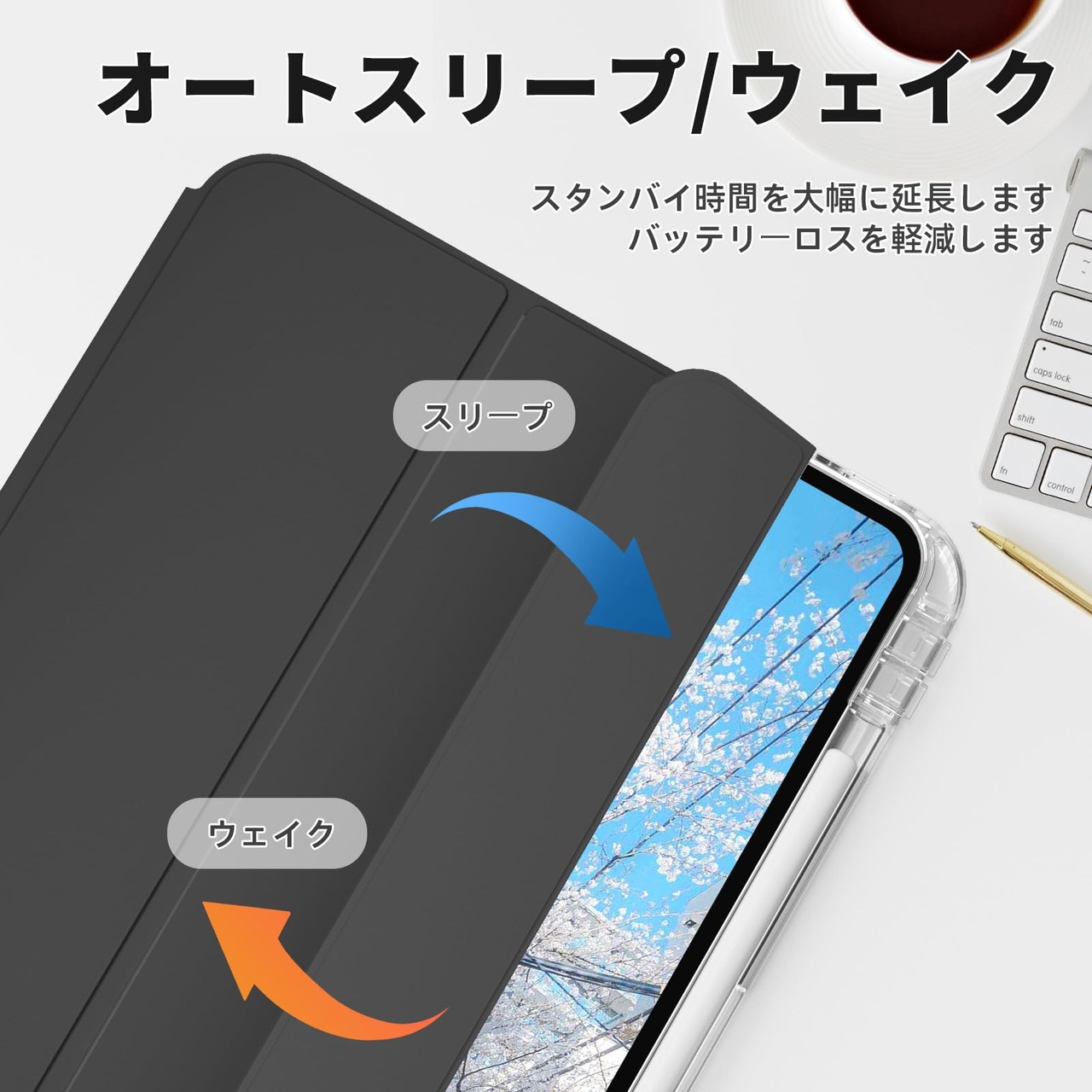 ❛‿˂̵✧「省エネなオートスリープ機能」ケースの開閉より自動的にウェイク・スリーブになるスマートなオートスリープ機能がついており、バッテリーの消耗を減少し、待機時間の延長には一役を立ってくれます。 (オートスリープの設定方法:「設定」の「画面表示と明るさ」から「ロック/ロック解除」をオンにします。)
