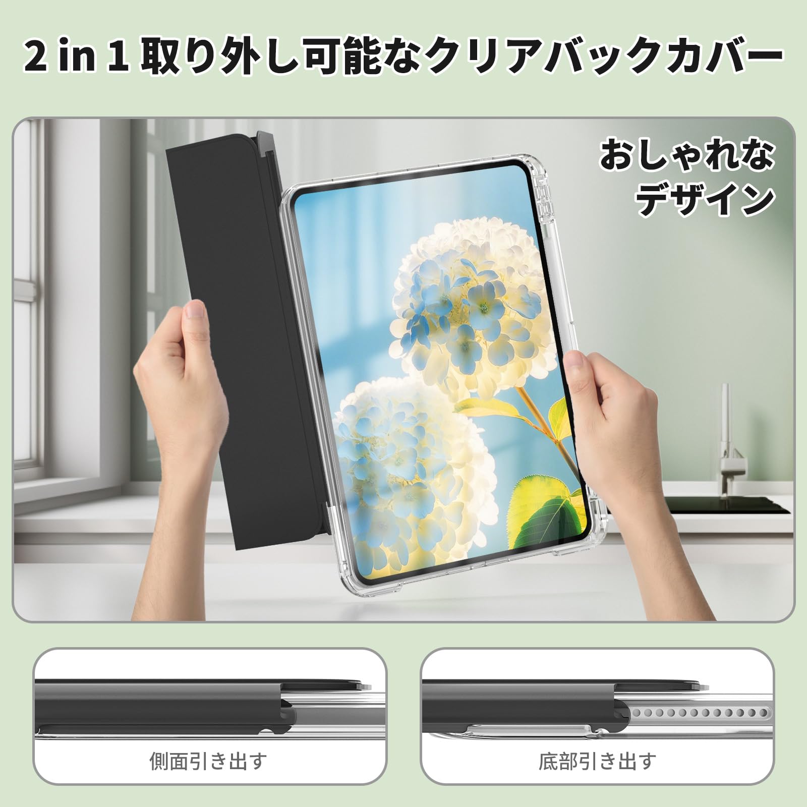 【在庫処分】GKABXY iPad Air 13インチ ケース (M3/M2) 2025/2024 iPad Pro 12.9インチ 第6 / 5 / 4世代 分離式 ケース 2022 2021 2020 取り外し可能 透明 クリアカバー アクリル 縦置き/横置きスタンド ペンシル収納 耐衝撃 軽量 精密設計 着脱簡単 アイパッド ブラック