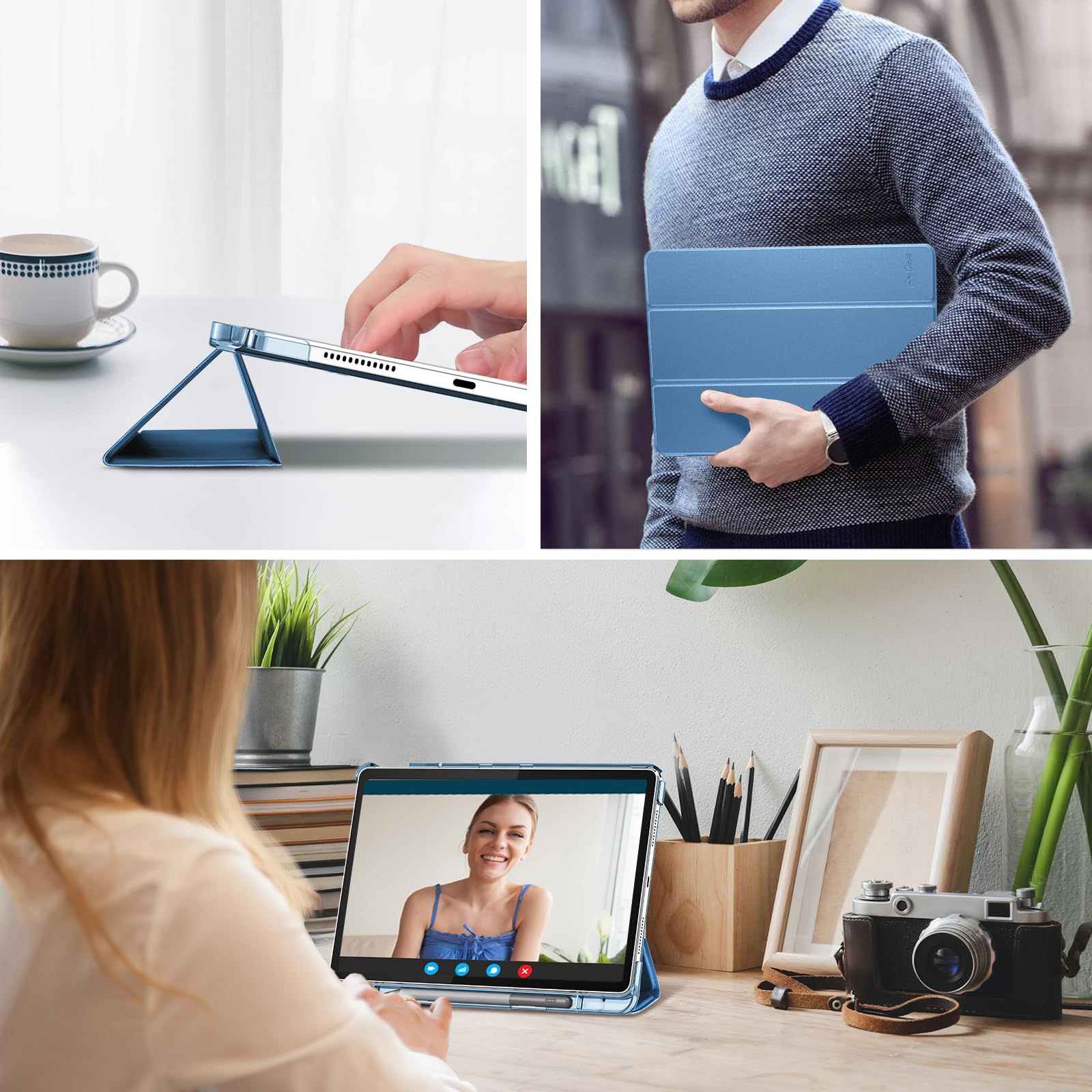 【在庫セール】ProCase レノボ Tab M11/B11 10.95インチ 保護ケース 三つ折り ペン収納 フォリオ オートスリープ/ウェイクに対応 TPUバック スマートカバー 対応機種:Lenovo Tab M11 10.95 2024発売(ZADA0020JP)、Lenovo Tab B11 10.95 2024発売(ZADB0291JP)-ブルー