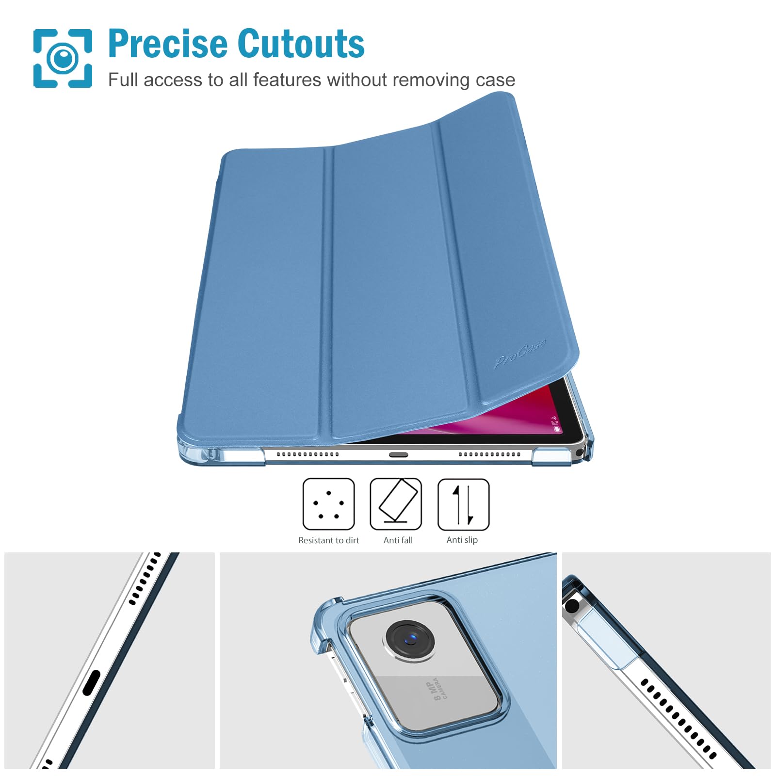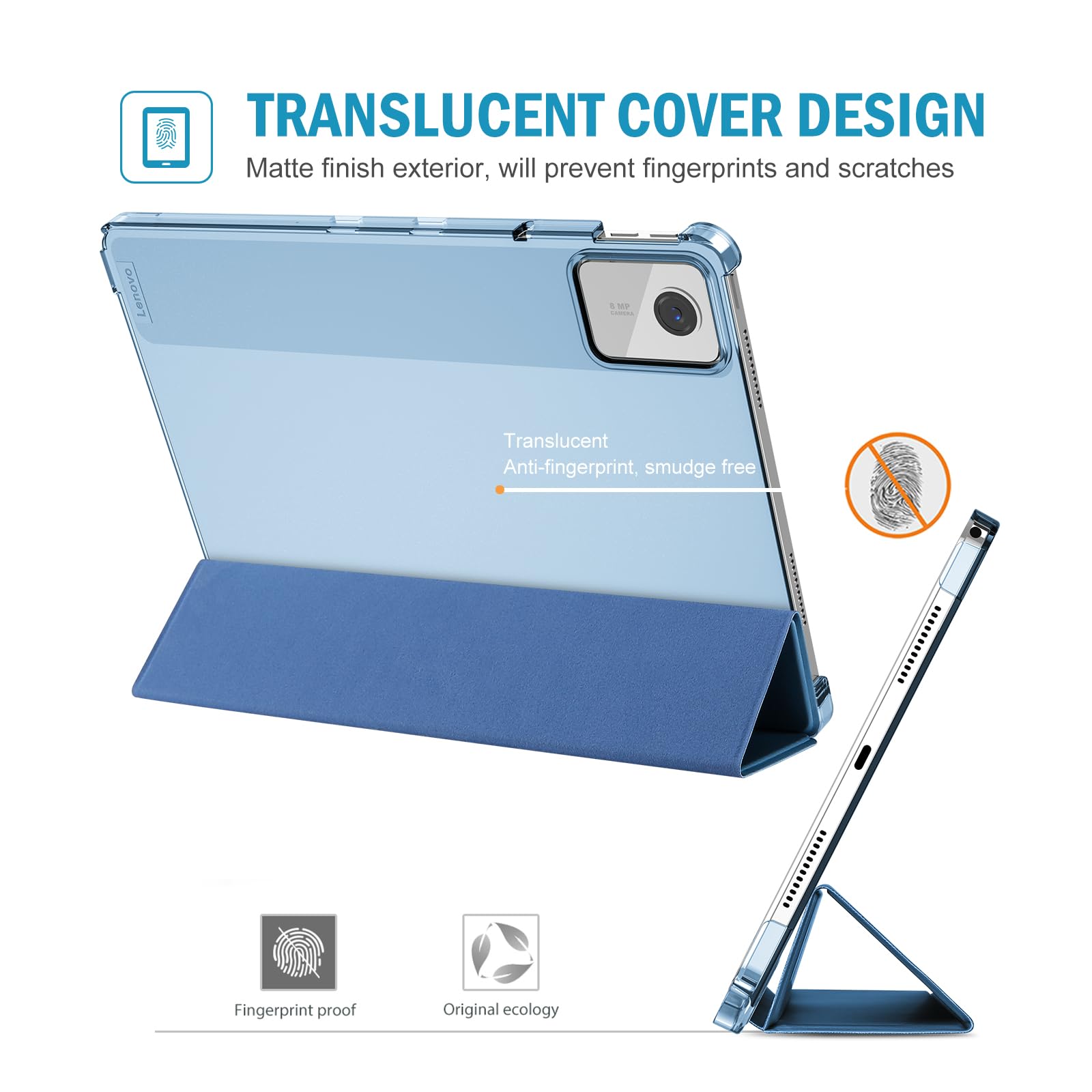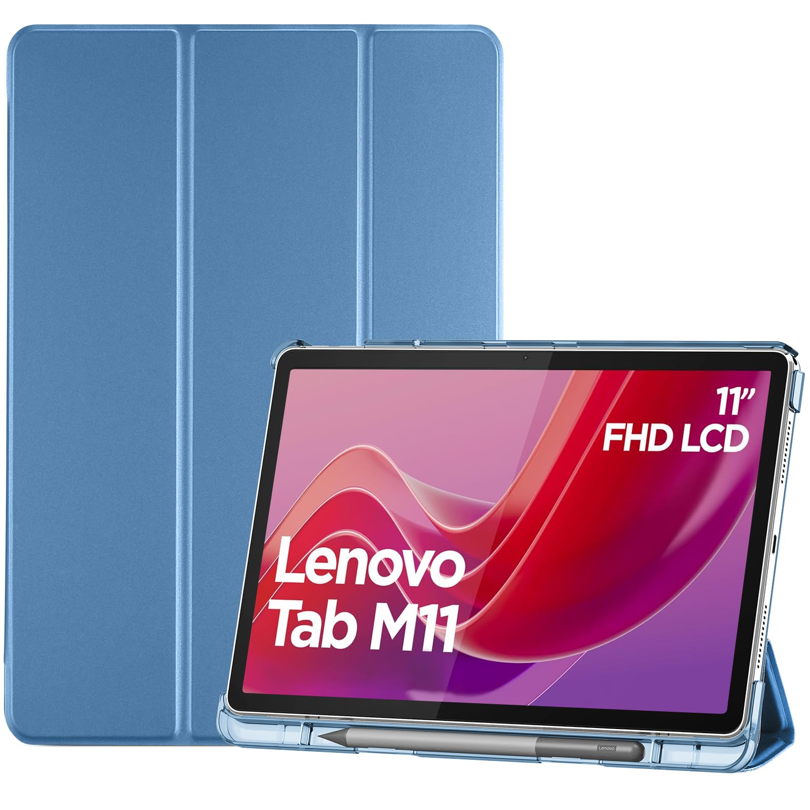 ProCase レノボ Tab M11/B11 10.95インチ 保護ケース 三つ折り ペン収納 フォリオ オートスリープ/ウェイクに対応 TPUバック スマートカバー 対応機種:Lenovo Tab M11 10.95 2024発売(ZADA0020JP)、Lenovo Tab B11 10.95 2024発売(ZADB0291JP)-ブルー