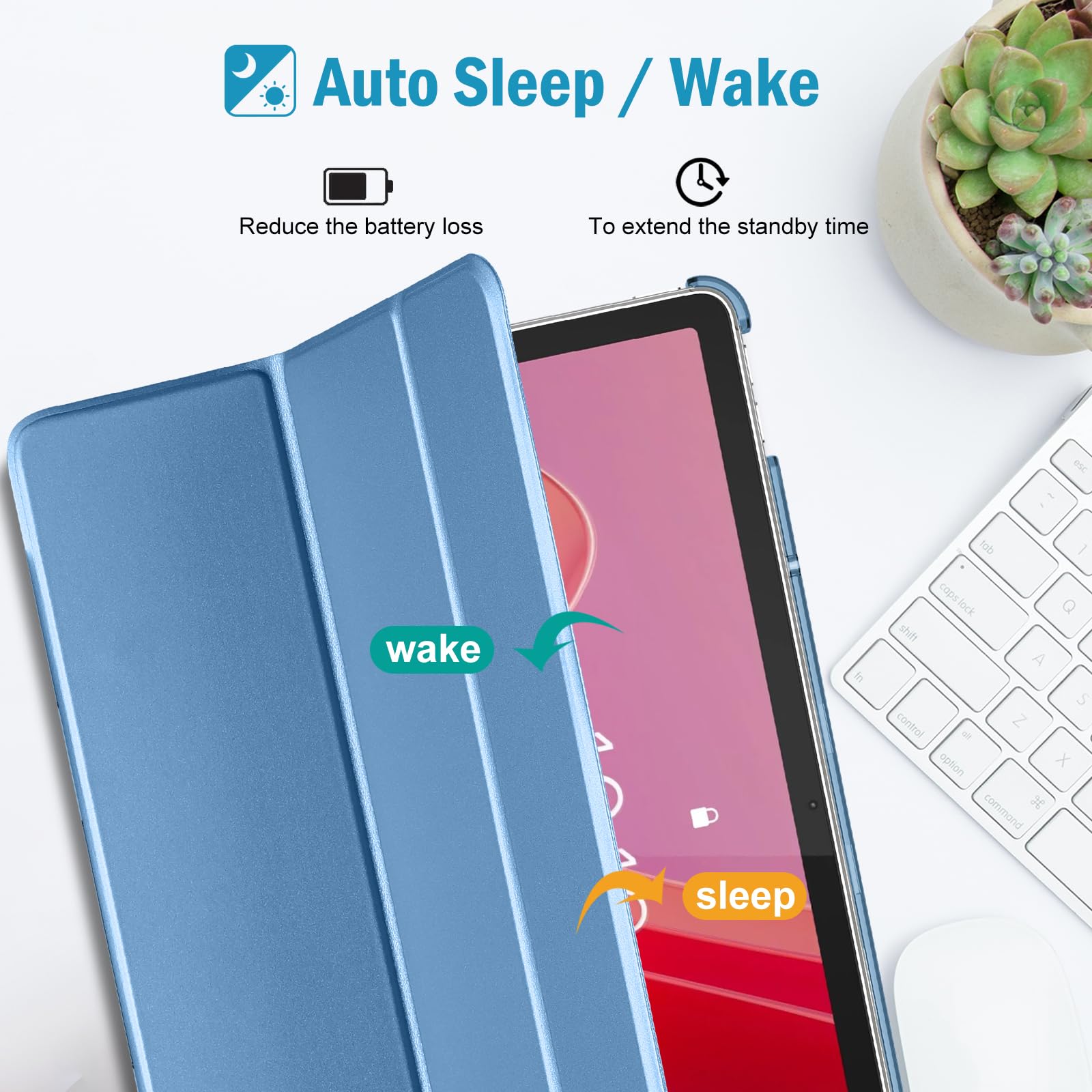 【自動睡眠・喚起】オートスリープ/ウェイクに対応します;マグネットがケースクロージャーを固定し、開閉も簡単です。