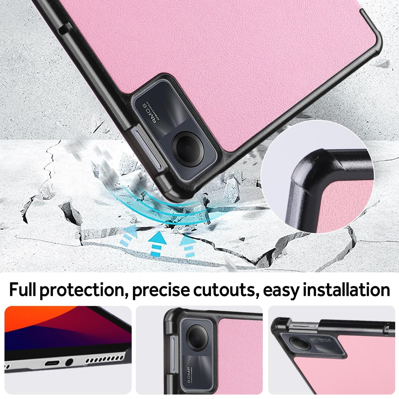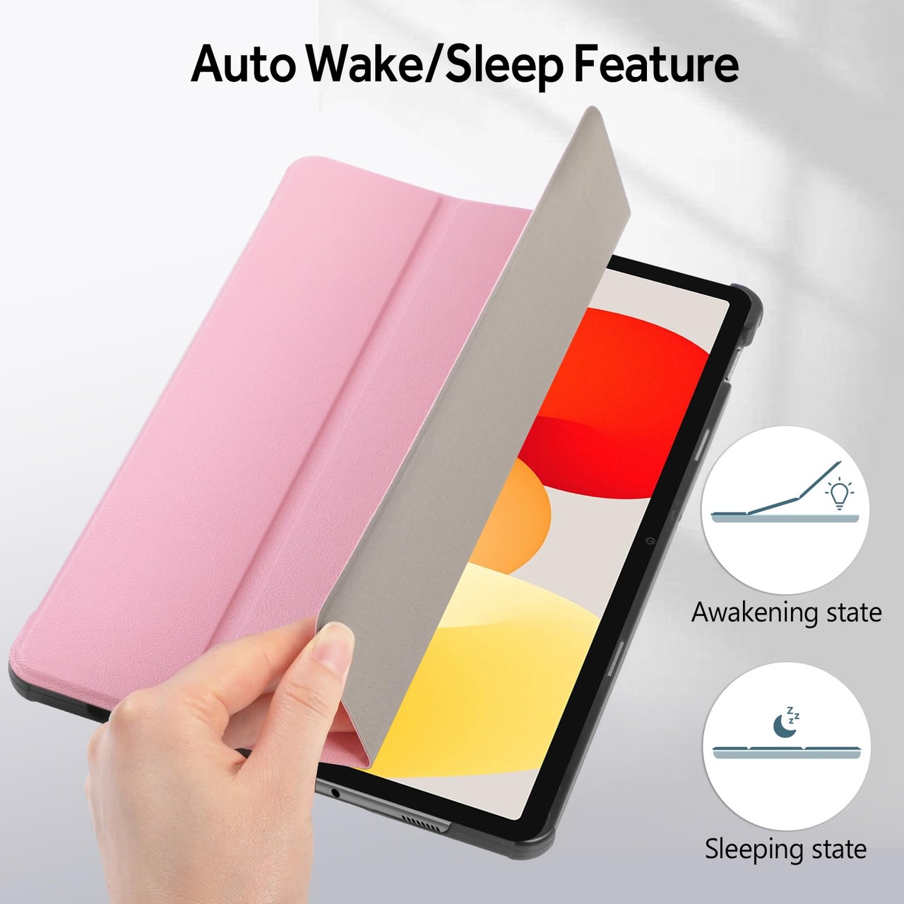 Hianjoo Xiaomi Redmi Pad SE 対応 ケース 11インチ タブレットケース Redmi Pad SE 11インチ 対応 カバー スタンド機能付き オートスリープ機能 PUレザー 全面保護ケース 軽量 薄型 擦り傷防止 - ピンク