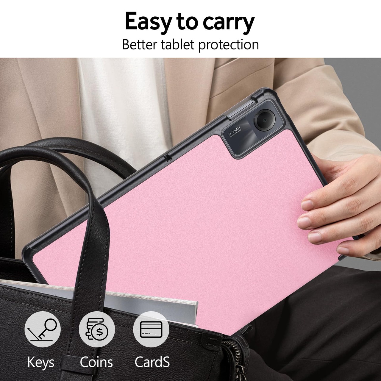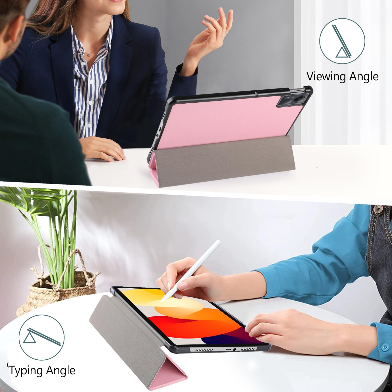 【特価セール】Hianjoo Xiaomi Redmi Pad SE 対応 ケース 11インチ タブレットケース Redmi Pad SE 11インチ 対応 カバー スタンド機能付き オートスリープ機能 PUレザー 全面保護ケース 軽量 薄型 擦り傷防止 - ピンク