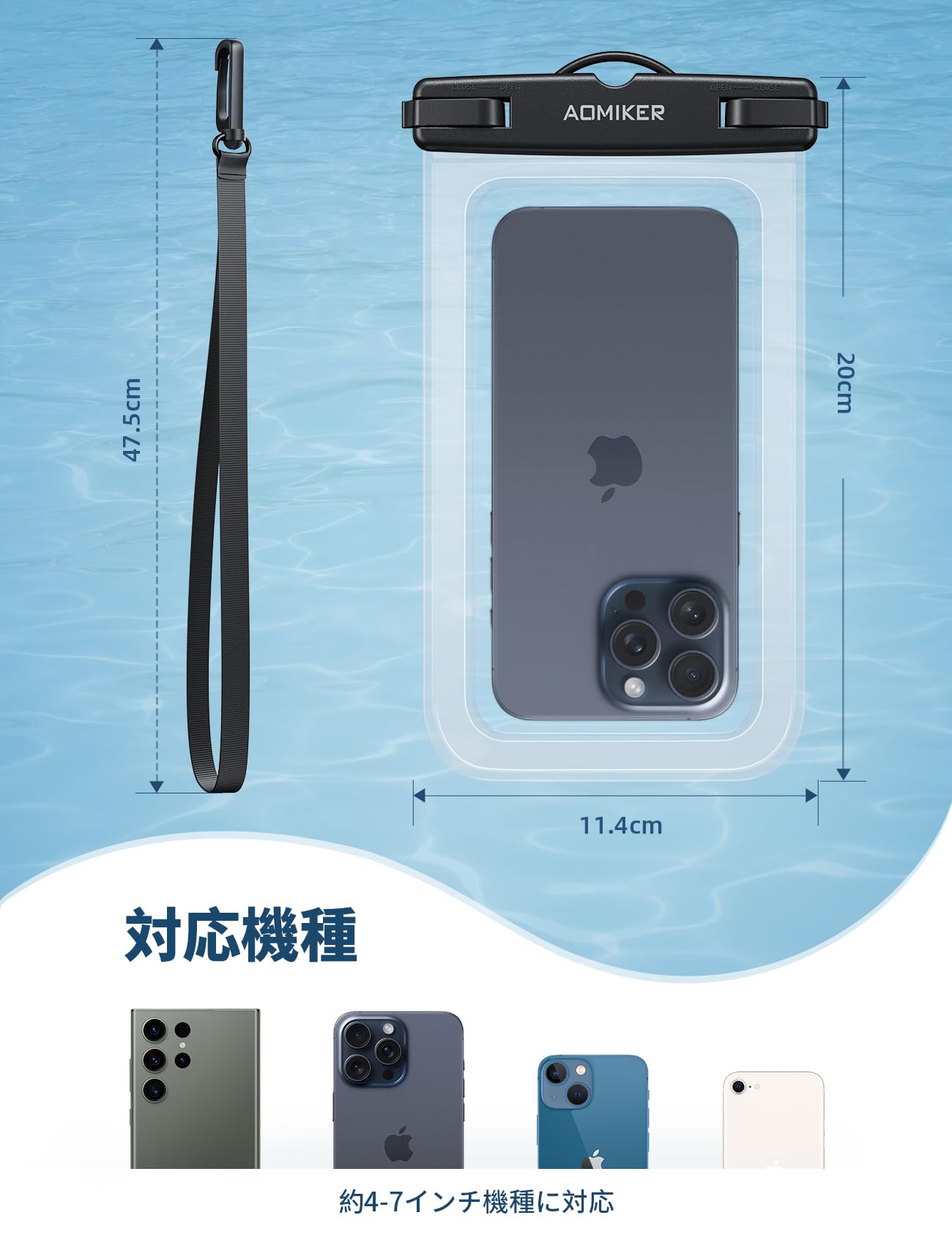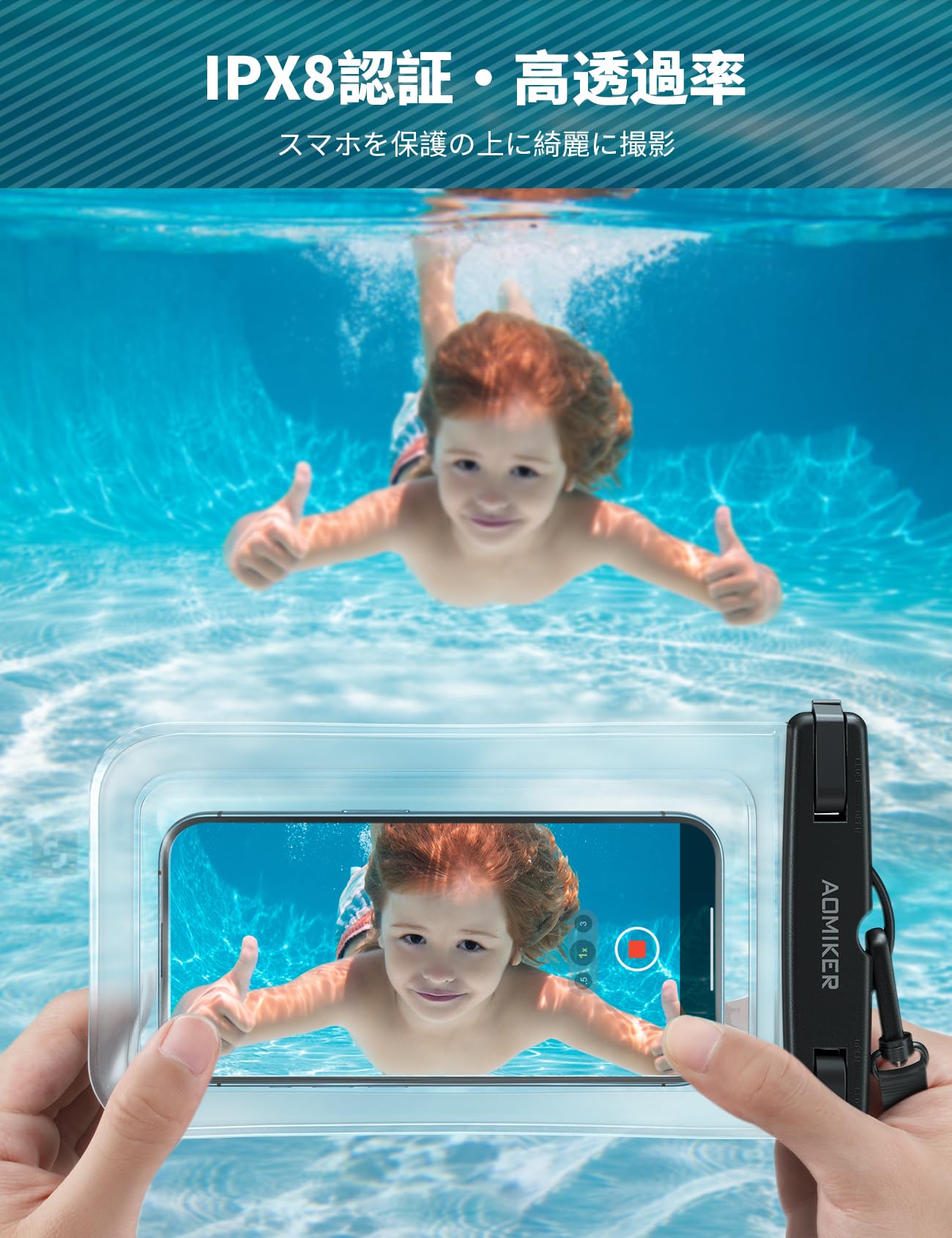 Aomiker 2枚セット スマホ 防水 ケース IPX8 : 海 プール すまほ ぼうすい カバー 水中 撮影 顔認証 通話 スマフォ アイホン 携帯 けいたい 首かけ 海水浴 水泳 潜水 お風呂 温泉 iPhone 16e 16 15 14 plus pro promax 13 mini 12 プロ マックス se Huawei Xperia android に対応 透明