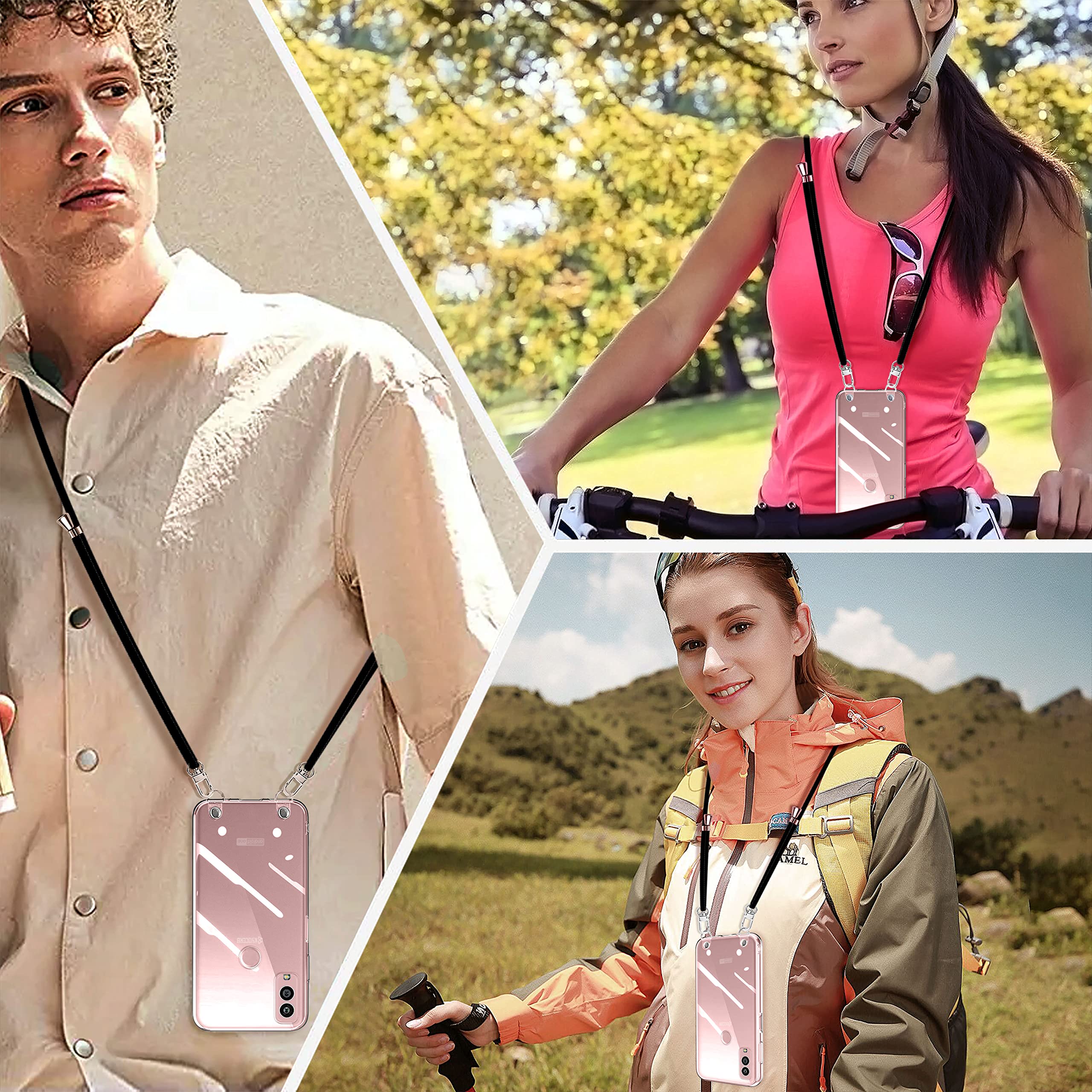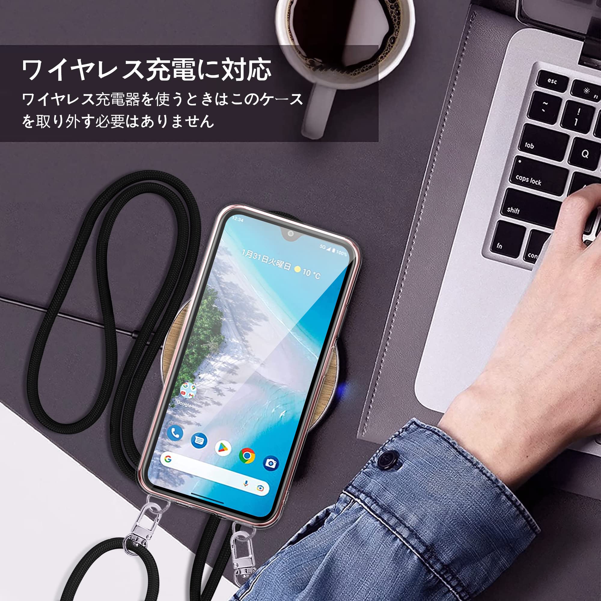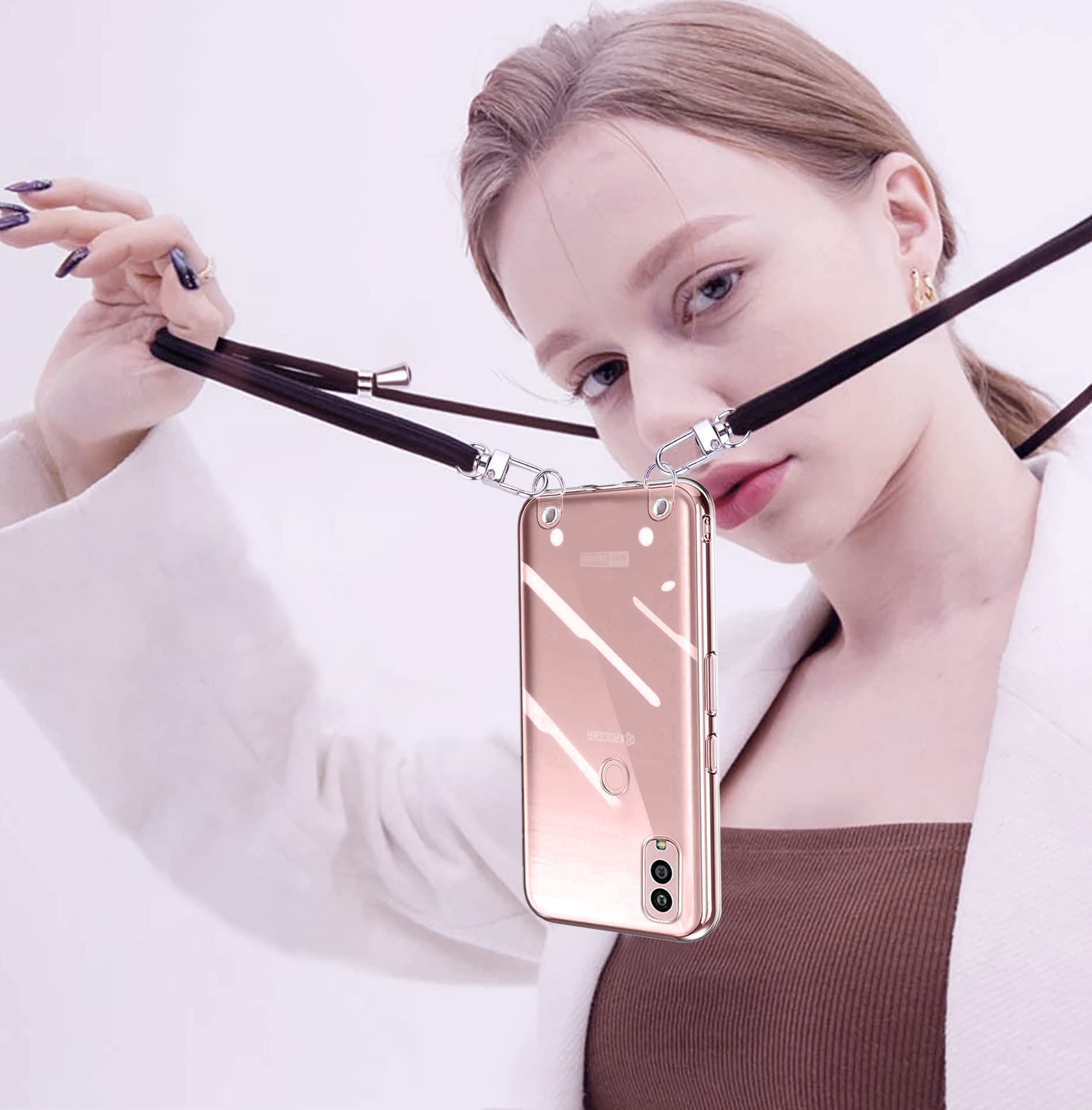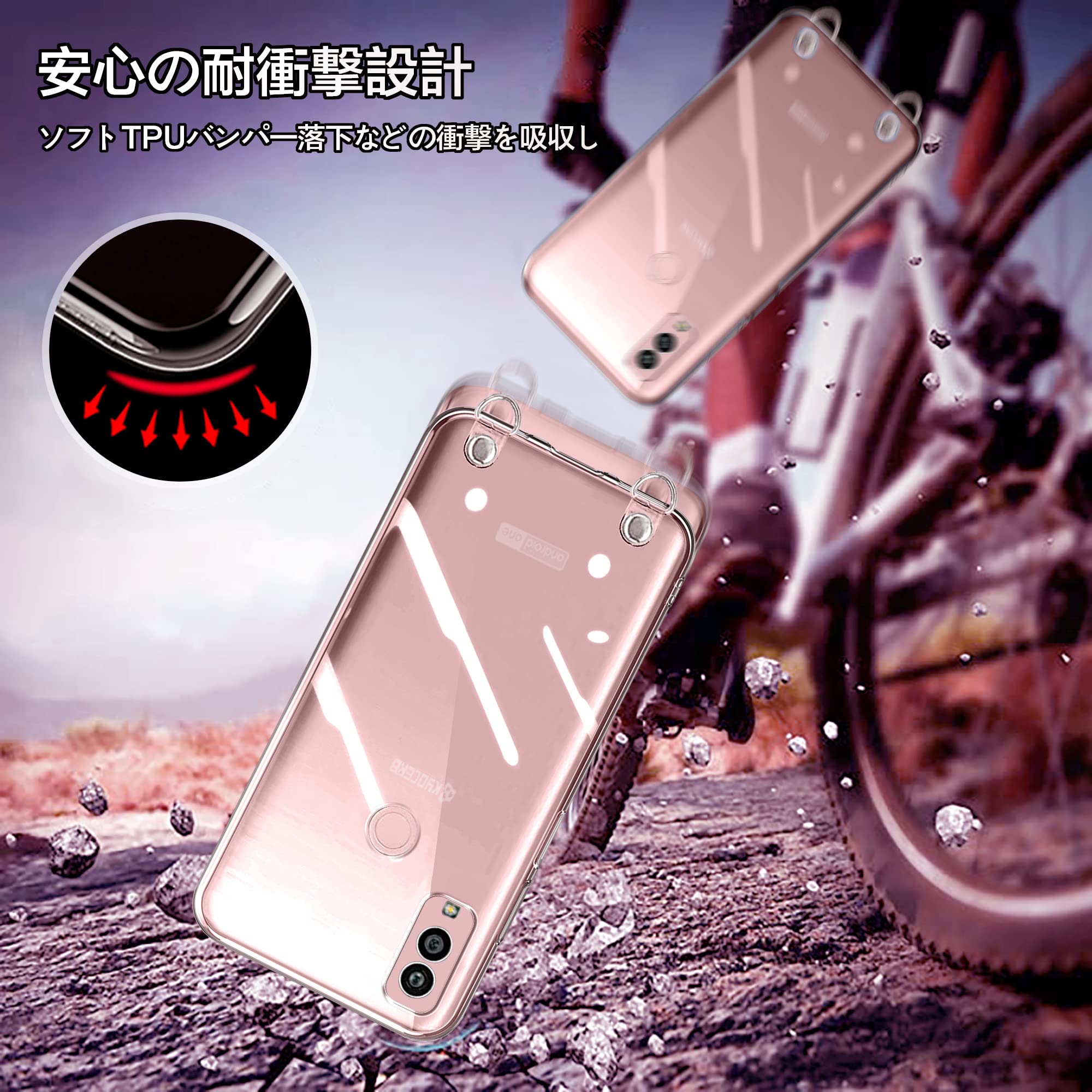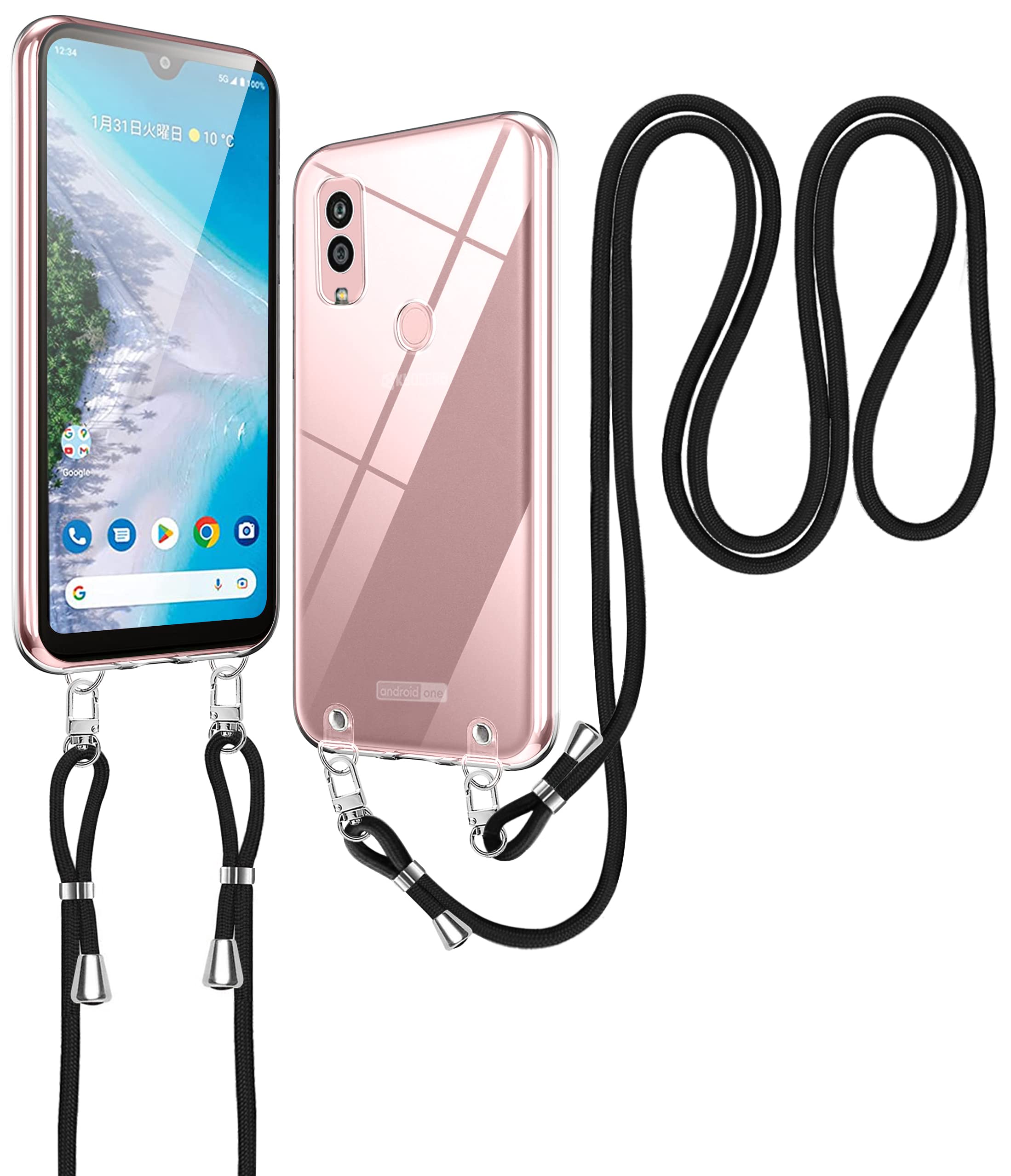 京セラ Android One S10 用 ケース クリア ショルダー Kyocera Android OneS10 スマホケース KC-S304 ケース 肩掛け 斜めかけ 縄掛け ケース ストラップ付き スマホケース 透明 TPU 京セラ アンドロイドワンS10 スマホ シリコン カバー 薄型 軽量 耐衝撃 長さ調整可能 取り外し可能 落下防止 紛失防止 (クリア)