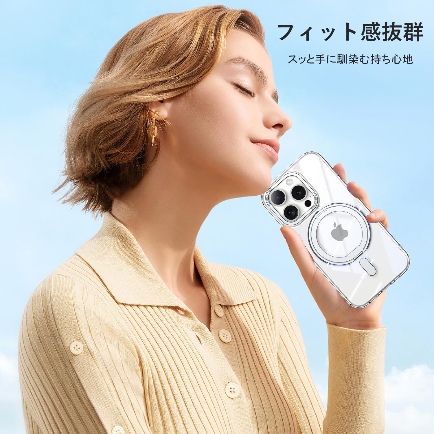 「極めた素材」背面には透明素材を採用しています。黄変防止機能により、使用中の指紋や油汚れを防ぎ、常にクリアな状態を保ちます。透明なので、iPhoneの色が美しく際立ち、異なる風景を楽しむことができます。ストラップ穴付きで、気分に合わせてお気に入りのアクセサリーを取り付けて、携帯の落下防止やデコレーションが簡単にできます。