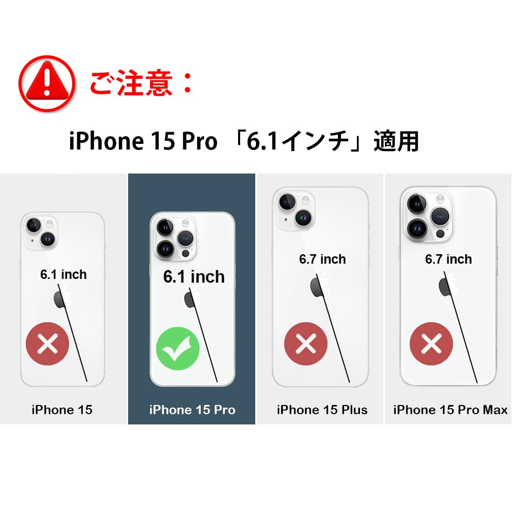 「互換性モデル」 iPhone 15 Pro 適用 「6.1インチ」 用 Magsafe対応 ケース。※ご注意:ご注文する前に、必ずお買い求めの機種とカラーを確認してください。全てのMagsafe付きデバイス対応、Qi充電には対応していません。