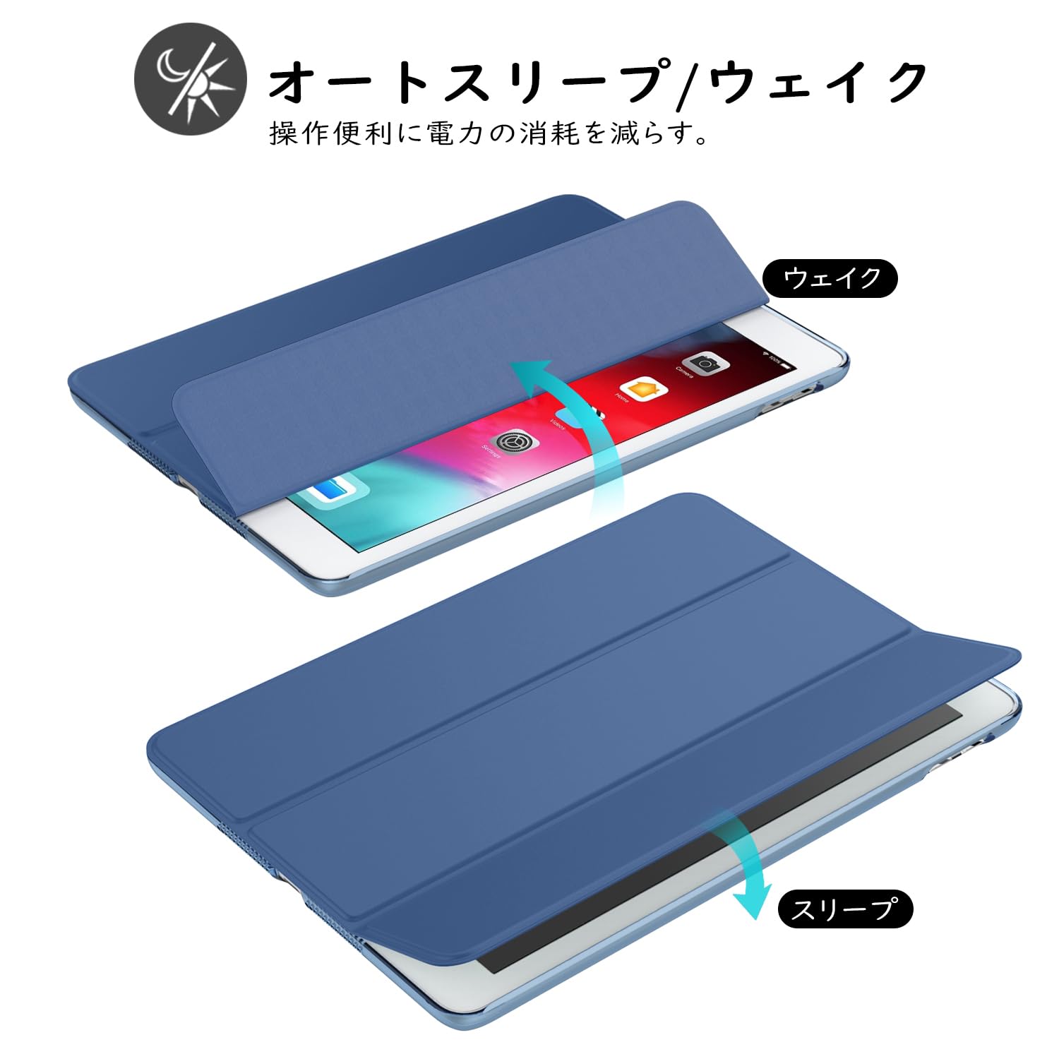 【在庫セール】TiMOVO iPad 9.7インチ ケース iPad 第6世代/第5世代 ケース A1822/A1823/A1893/A1954 2018/2017モデル iPad 9.7 保護カバー PUレザー 三つ折りスタンドケース オートスリープ機能付き マグネット式開閉 耐久 超薄型 耐衝撃 軽量 落下防止 精密設計 着脱簡単 背面半透明 バイスブルー