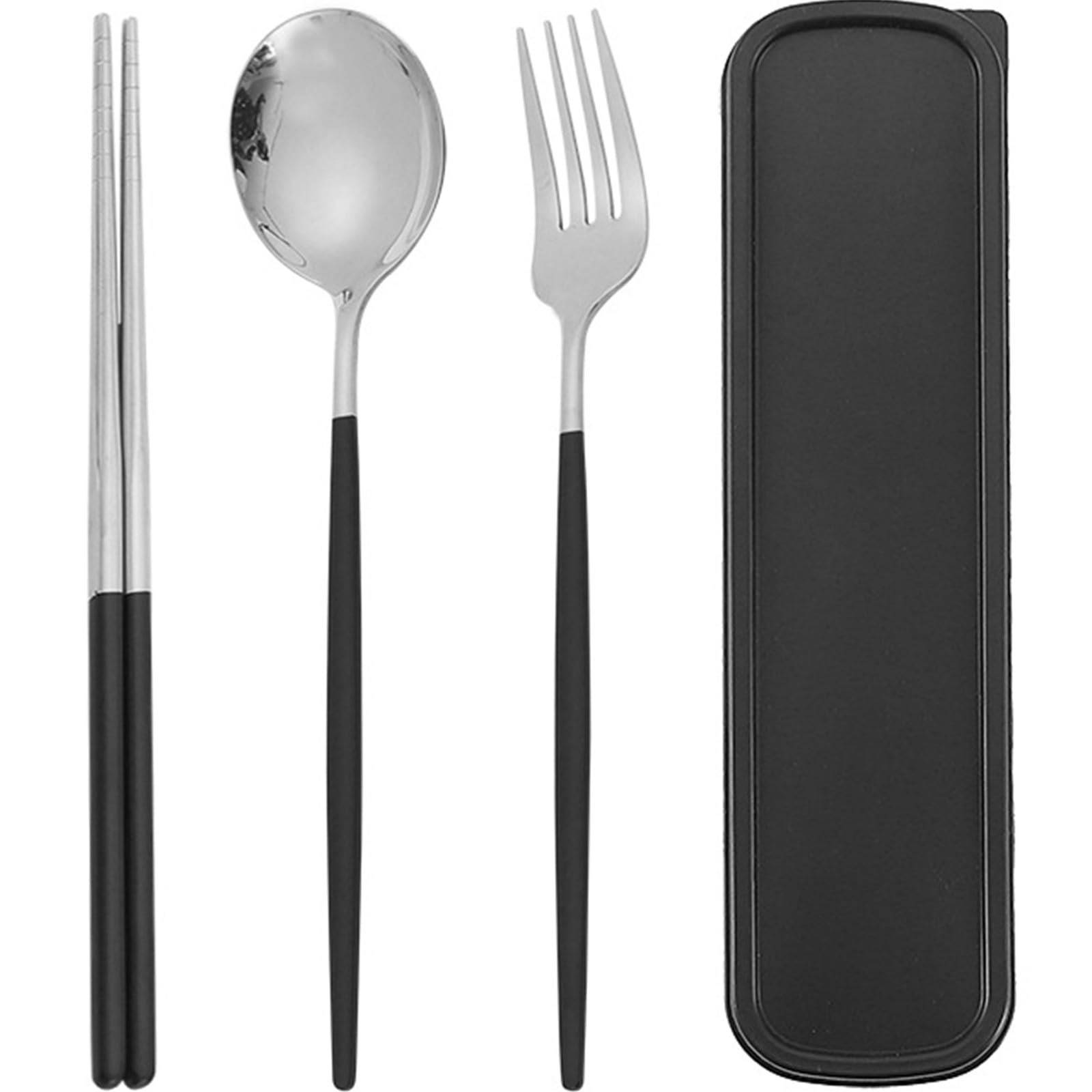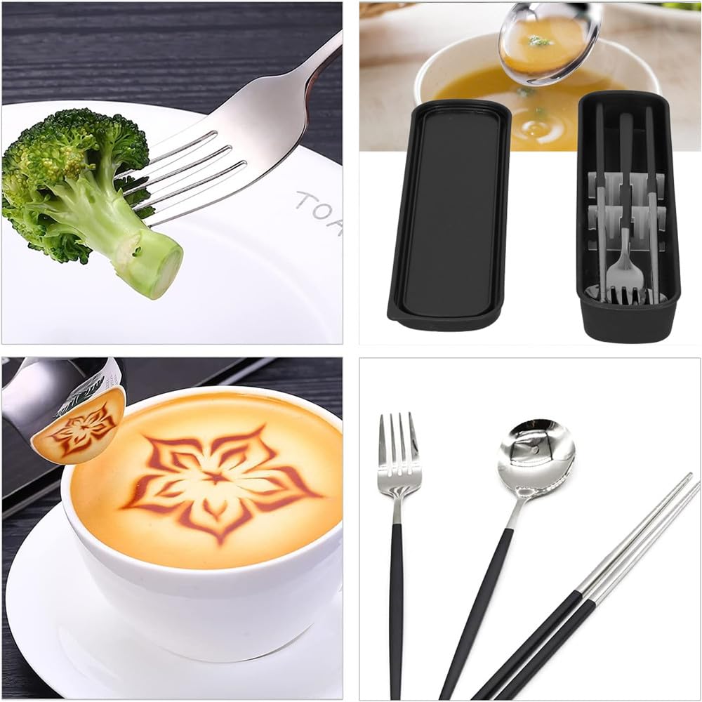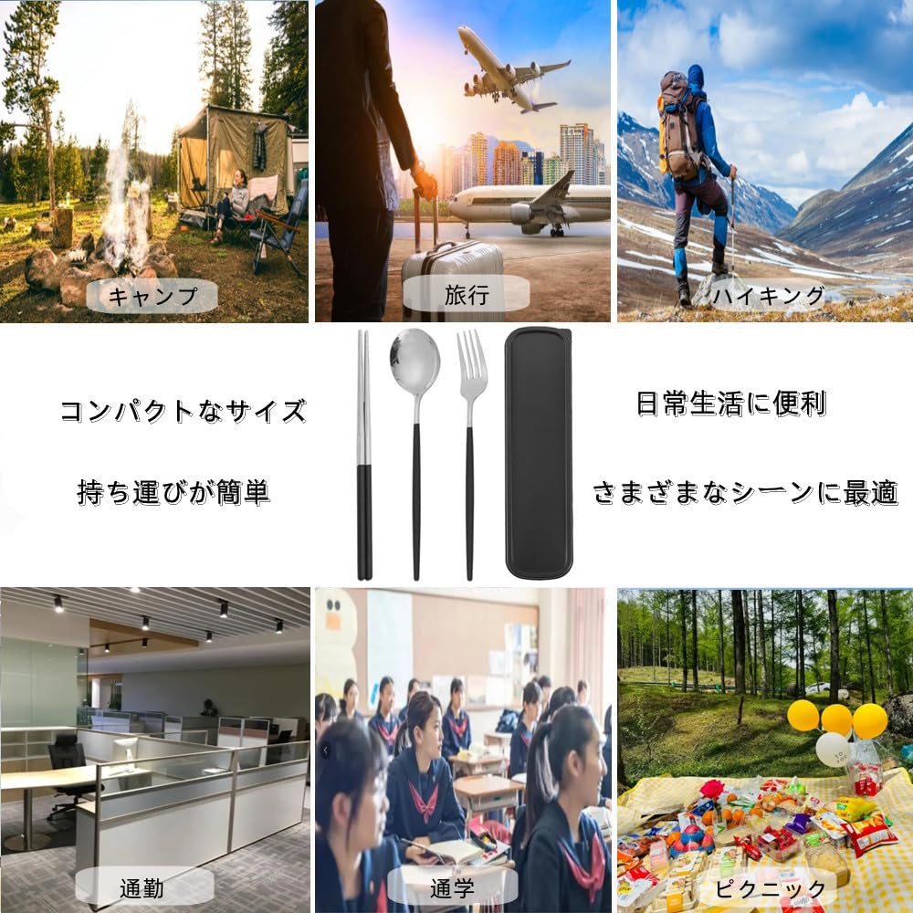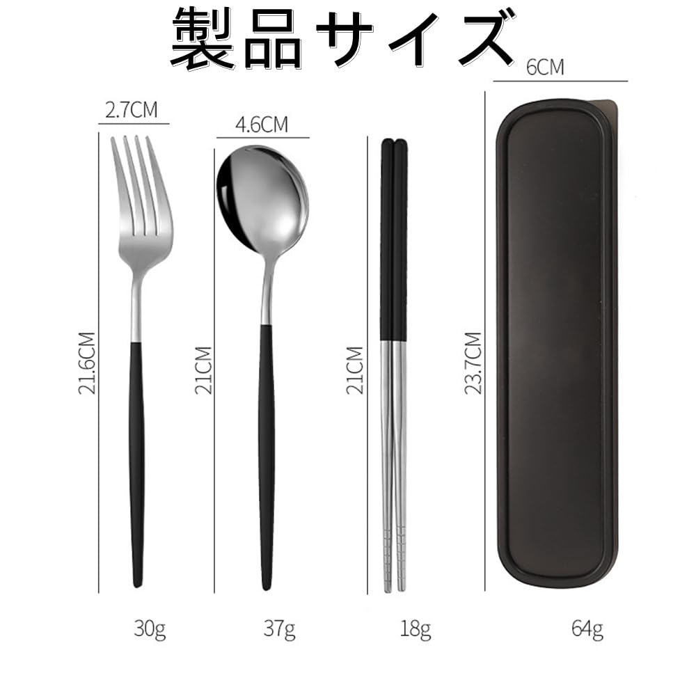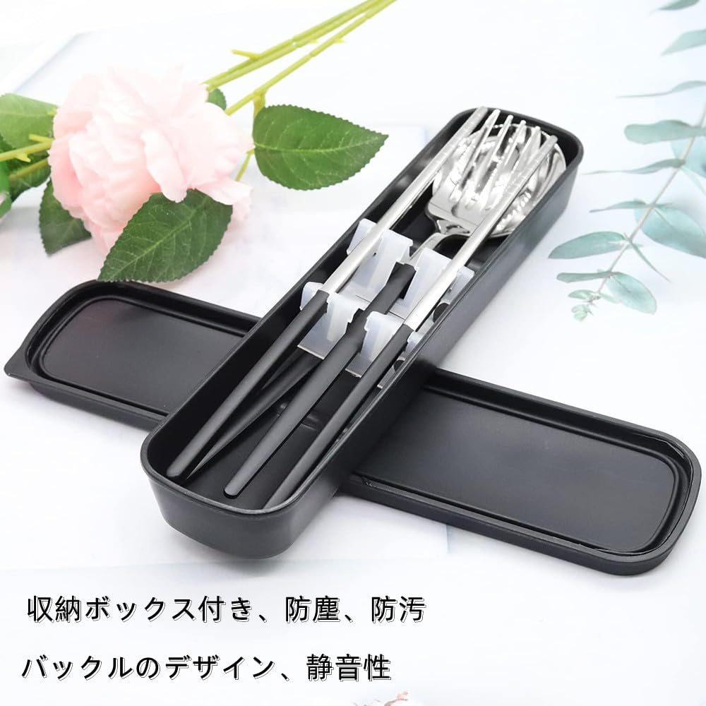 カトラリーセット 3点セット ステンレス鋼 箸 フォーク スプーン 収納ボックス付き 携帯食器セット ランチ 通勤 通学 遠足 弁当箱用 キャンプ用 携帯便利 ブラックシルバー