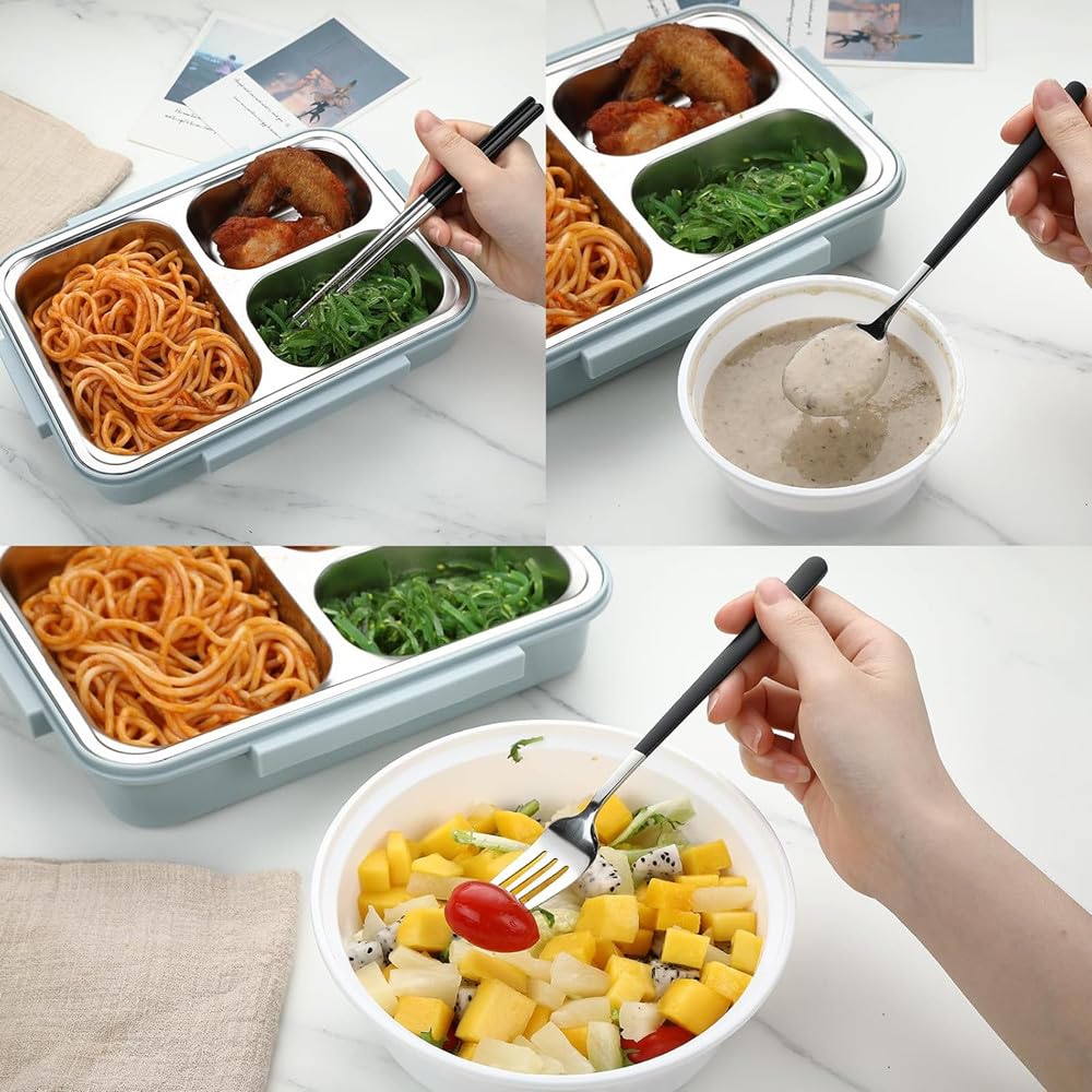【セット内容】スプーン、フォーク、箸の3点セット、収納ボックス付き。毎日のさまざまな食事のニーズに応えます。