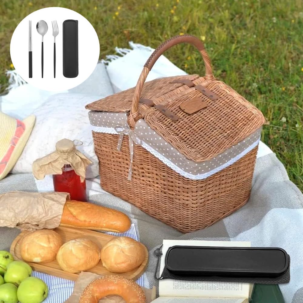 【持ち運びが簡単】小さな食器セットには収納ボックスが付いており、保管と持ち運びが簡単です。収納ボックスは清潔で衛生的で、ランチバッグやバッグに直接入れることができ、持ち運びが簡単で、外食に最適です。