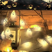 【いい雰囲気や照明効果】:おばけの形のペンダント式のミニランタン30連で、かわいらしく明るく鮮やかにハロウィンの雰囲気を演出します。恐怖の雰囲気を創造します、ハロウィンや化け物屋敷によく似合います。ンムードを楽しく盛り上げてくれます。