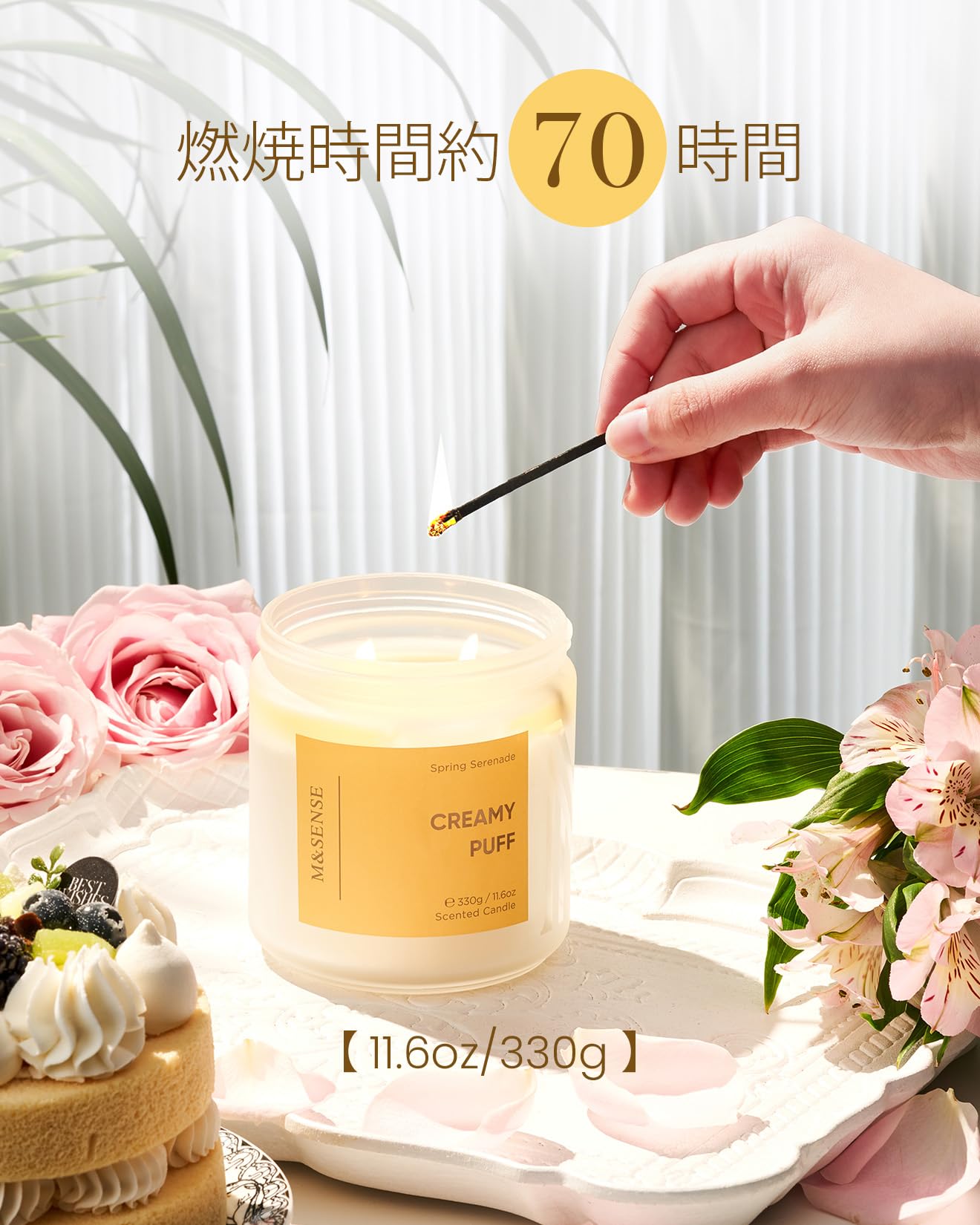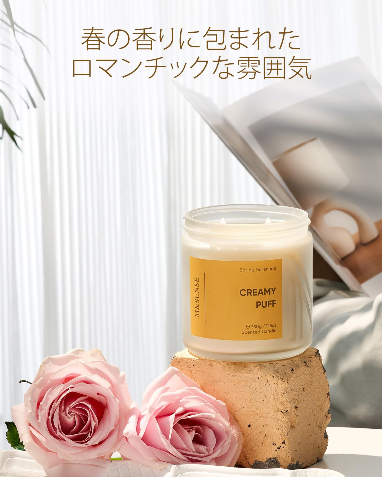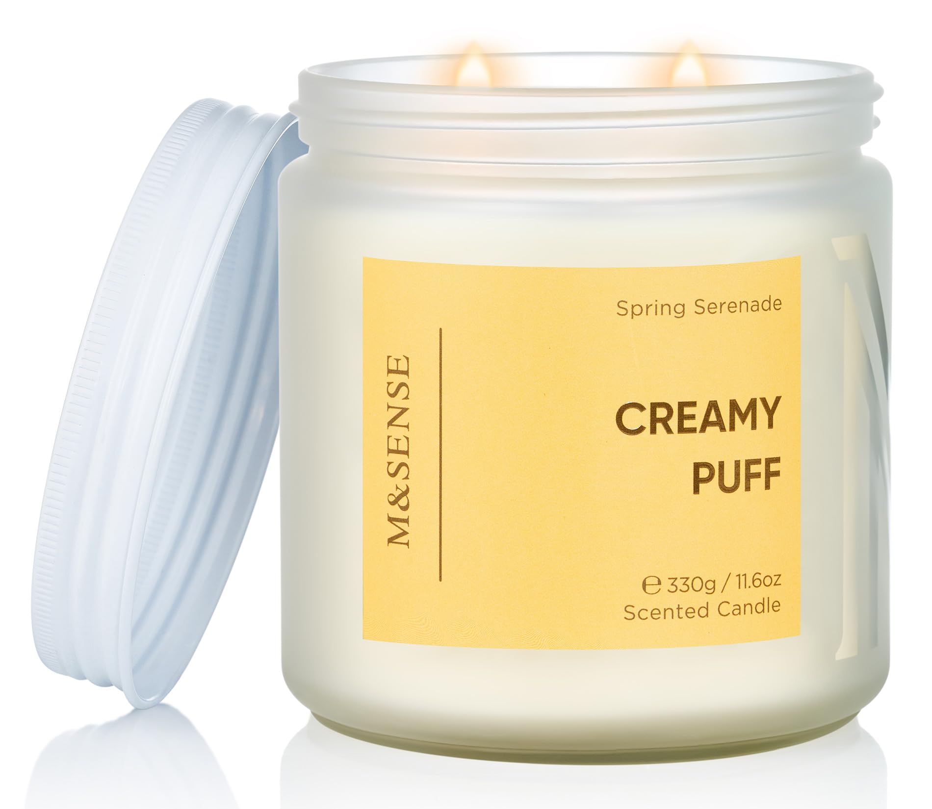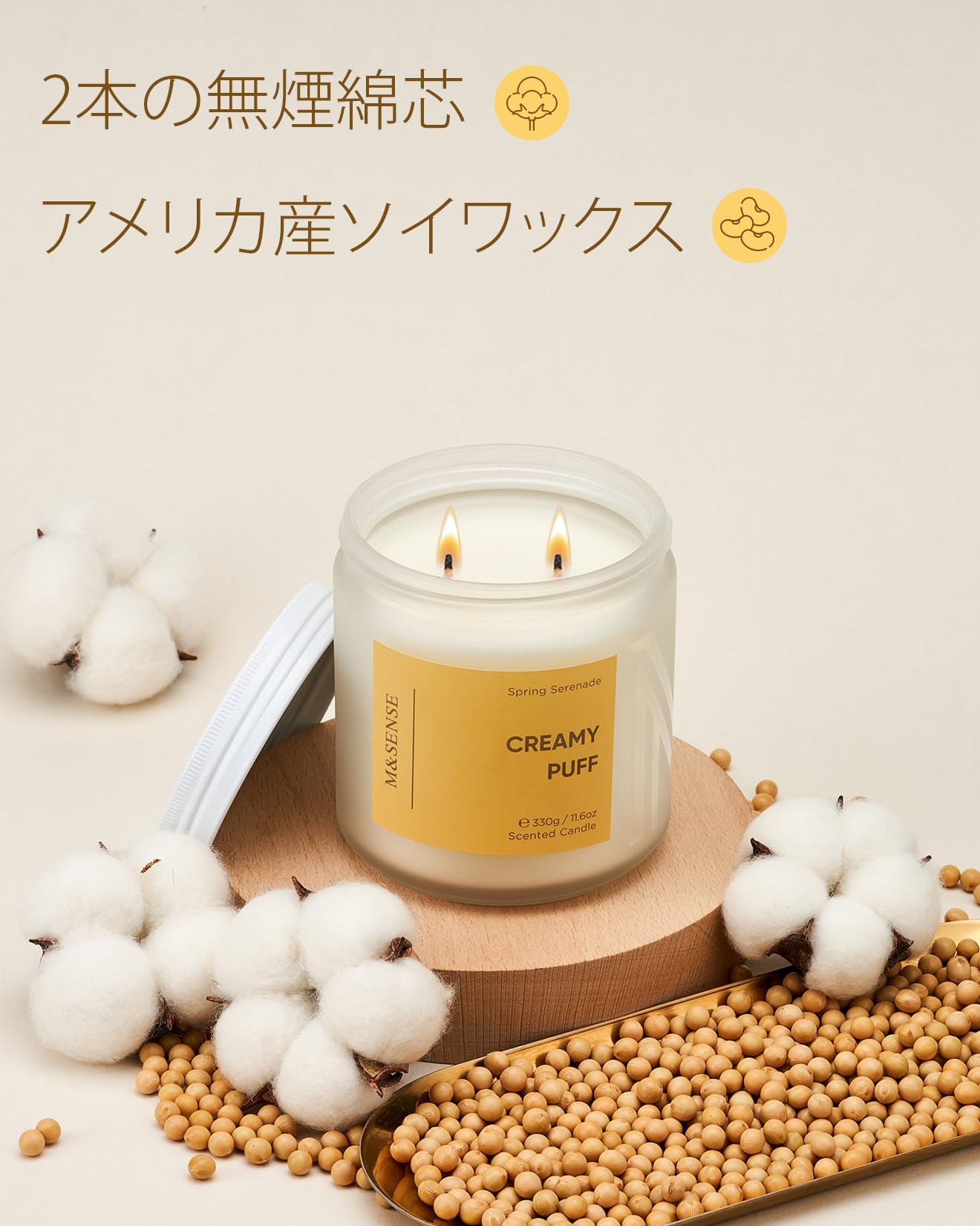 M&SENSE アロマキャンドル キャンドル 大型 クリーミーパフの香り 330g 燃焼時間70時間 2本の芯 ソイワックス ジャーキャンドル ホワイトデー バレンタイン 母の日 バレンタイン リラックスギフト プレゼント