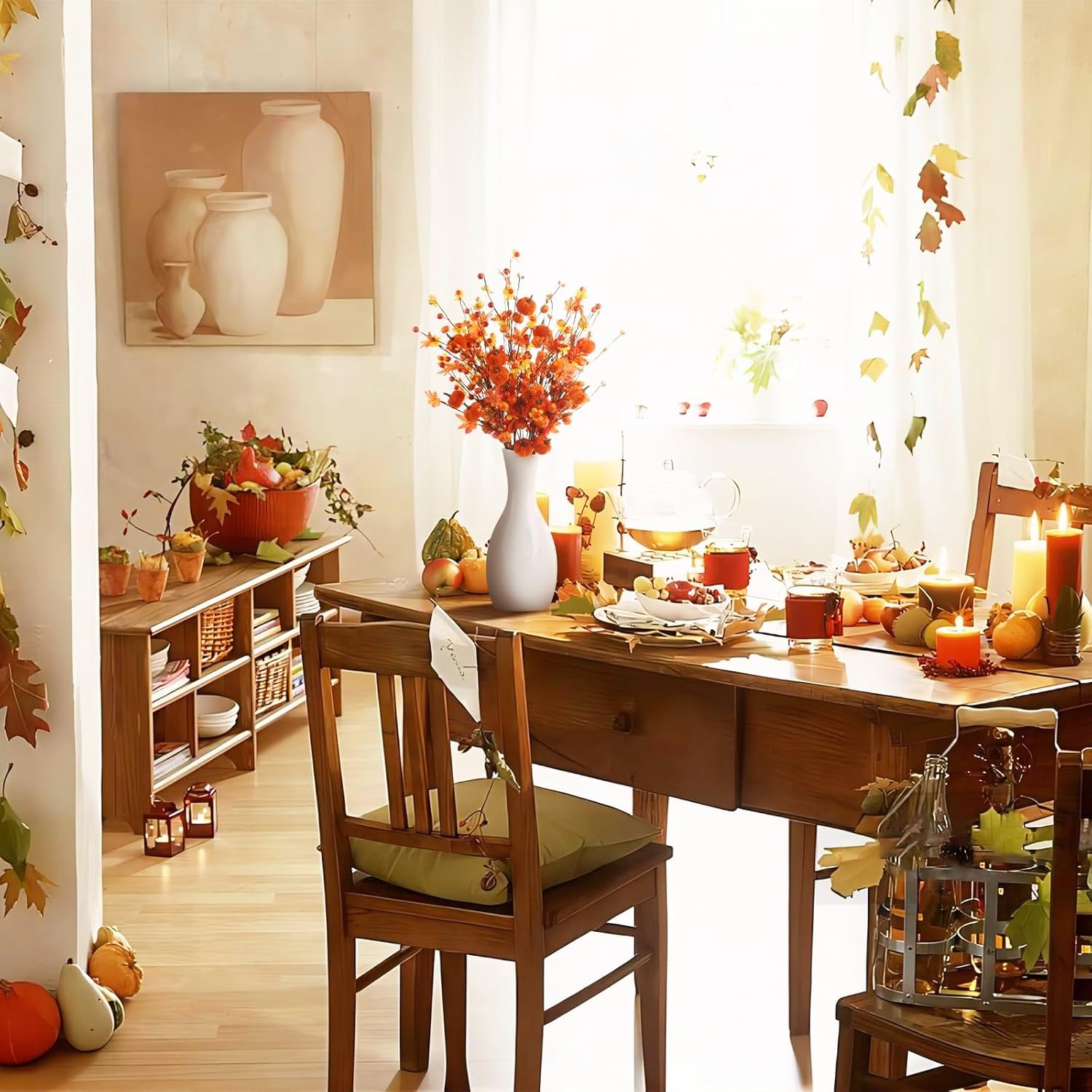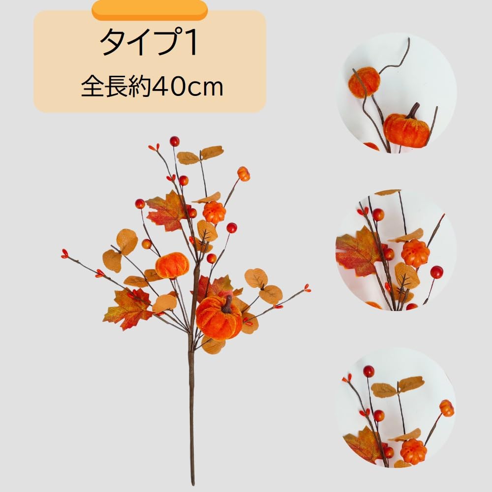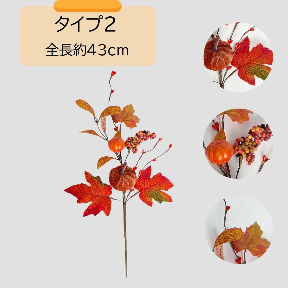 「適用シーン」:玄関、リビング、ダイニングテーブル、棚の上、カウンター、窓辺、壁面装飾、店舗ディスプレイ、カフェの装飾、ショーウィンドウ、撮影小道具、オフィスの受付、感謝祭やハロウィンのパーティー会場、テーブルセンターピース、ギフトアレンジ、手作りリースやハンドメイド作品の素材などに最適です。